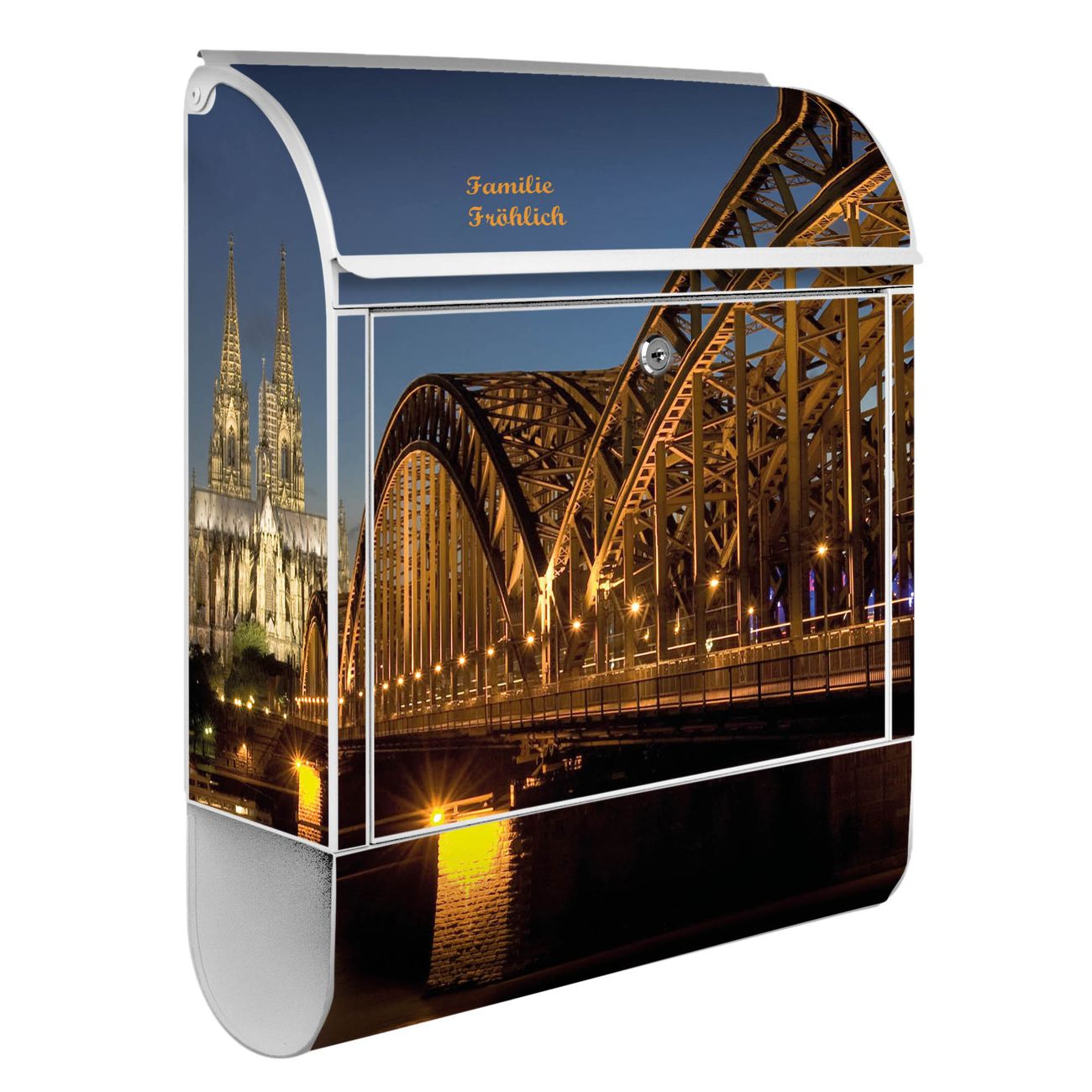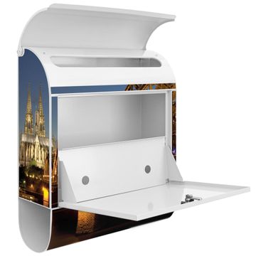 Der banjado Standbriefkasten mit Motiv Motiv Köln kombiniert großzügigen Stauraum mit modernem Design. Durch das geräumige Fach finden auch große A4-Sendungen problemlos Platz. Die integrierte Zeitungsrolle sorgt dafür, dass Tageszeitungen und Magazine separat und griffbereit untergebracht sind. Der pulverbeschichtete Standfuß ist farblich passend zum Briefkasten gestaltet und sorgt für ein stimmiges Gesamtbild. Mit dem individuellen Motiv setzen Sie einen optischen Akzent, der sowohl praktisch als auch dekorativ ist.