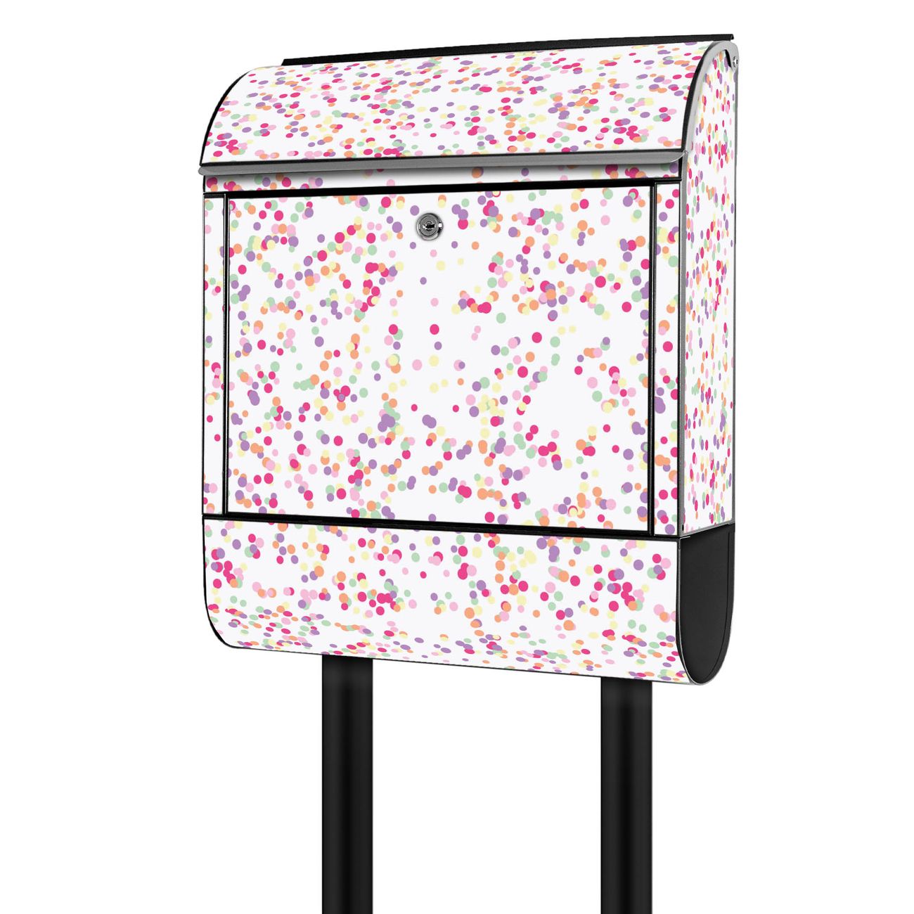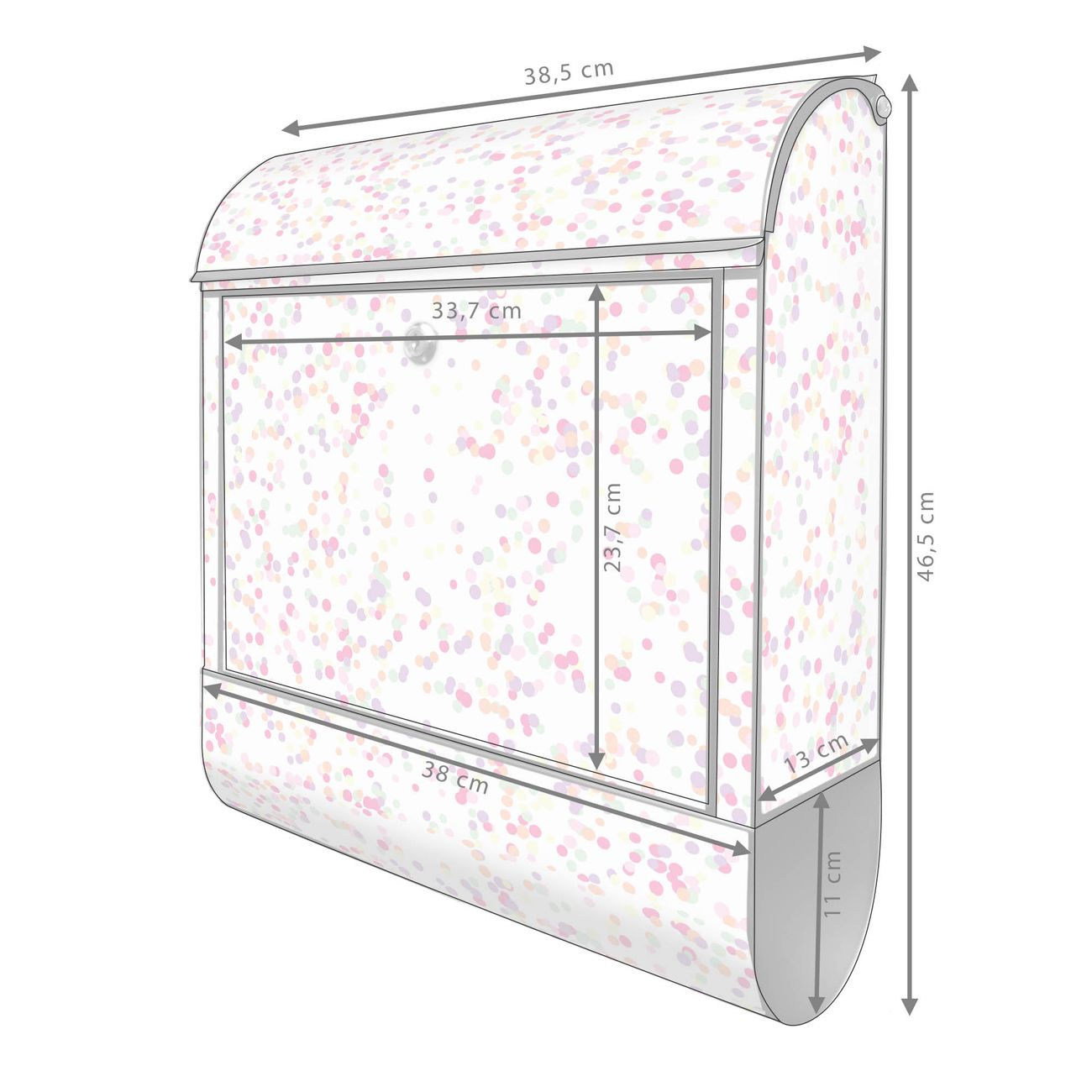 Der banjado Standbriefkasten mit Motiv Motiv Konfettiregen kombiniert großzügigen Stauraum mit modernem Design. Durch das geräumige Fach finden auch große A4-Sendungen problemlos Platz. Die integrierte Zeitungsrolle sorgt dafür, dass Tageszeitungen und Magazine separat und griffbereit untergebracht sind. Der pulverbeschichtete Standfuß ist farblich passend zum Briefkasten gestaltet und sorgt für ein stimmiges Gesamtbild. Mit dem individuellen Motiv setzen Sie einen optischen Akzent, der sowohl praktisch als auch dekorativ ist.