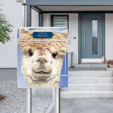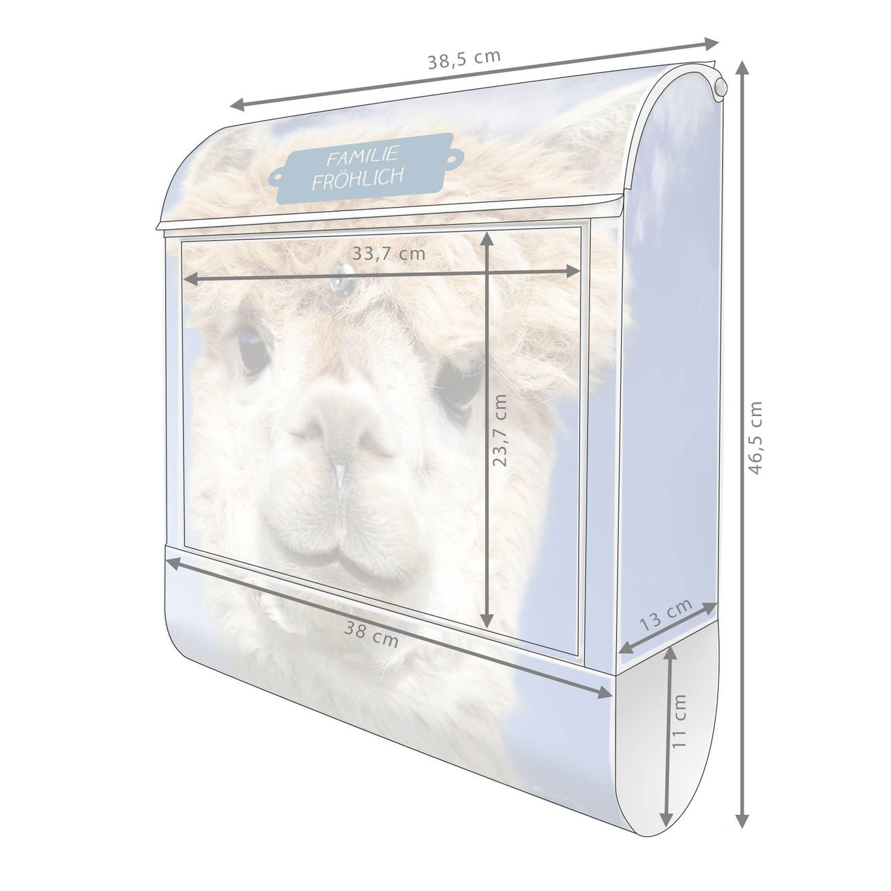 Der banjado Standbriefkasten mit Motiv Motiv Lama kombiniert großzügigen Stauraum mit modernem Design. Durch das geräumige Fach finden auch große A4-Sendungen problemlos Platz. Die integrierte Zeitungsrolle sorgt dafür, dass Tageszeitungen und Magazine separat und griffbereit untergebracht sind. Der pulverbeschichtete Standfuß ist farblich passend zum Briefkasten gestaltet und sorgt für ein stimmiges Gesamtbild. Mit dem individuellen Motiv setzen Sie einen optischen Akzent, der sowohl praktisch als auch dekorativ ist.