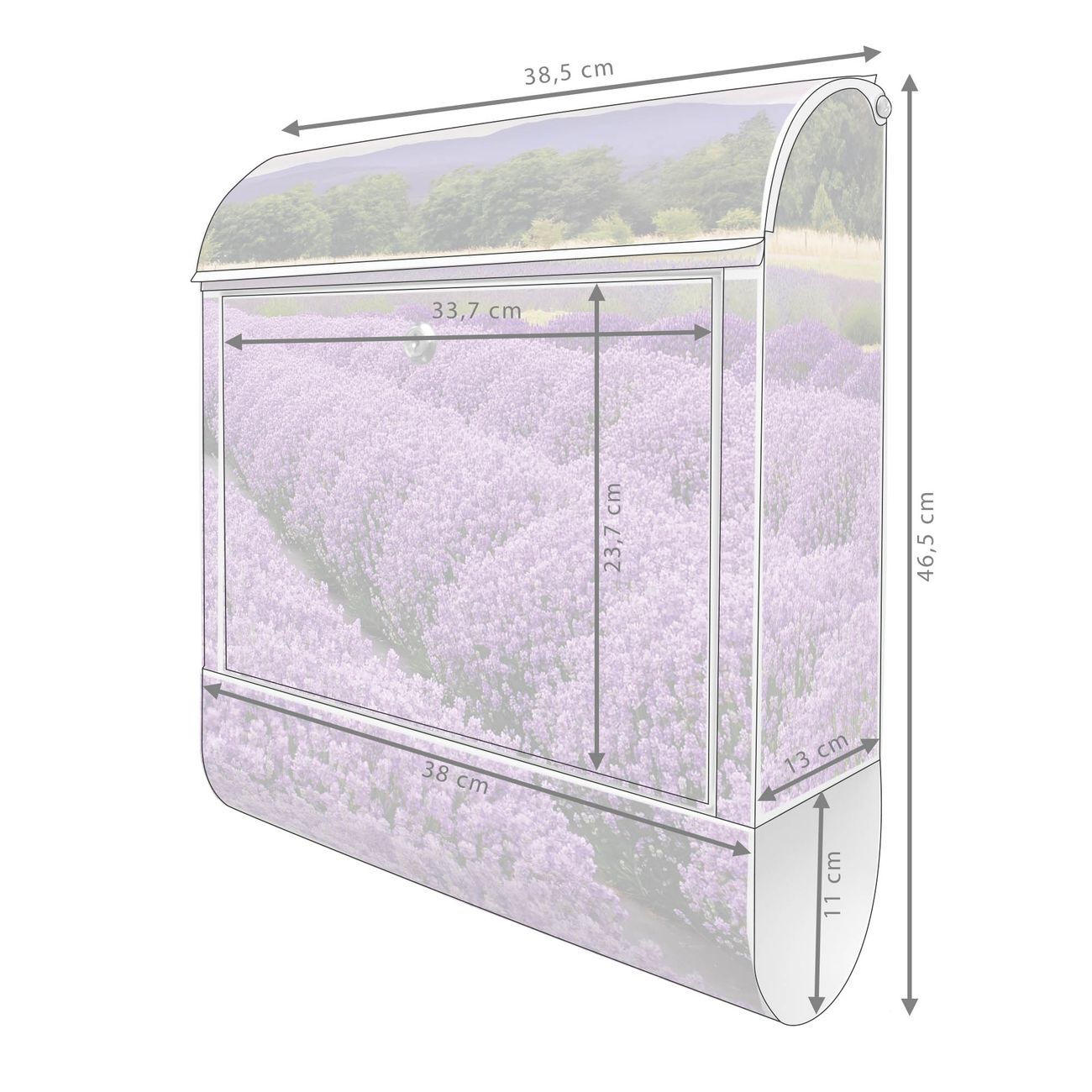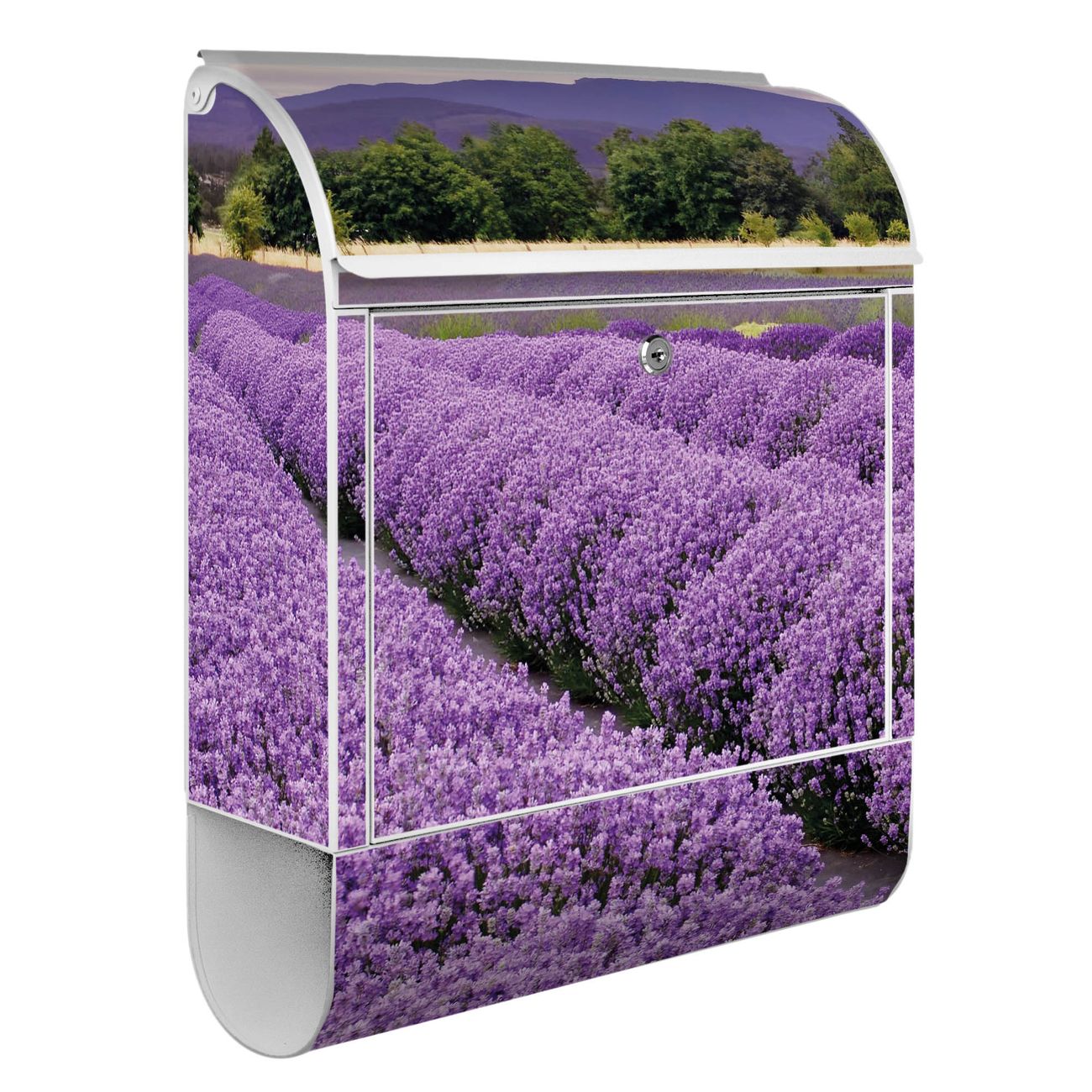 Der banjado Standbriefkasten mit Motiv Motiv Lavendel 1 kombiniert großzügigen Stauraum mit modernem Design. Durch das geräumige Fach finden auch große A4-Sendungen problemlos Platz. Die integrierte Zeitungsrolle sorgt dafür, dass Tageszeitungen und Magazine separat und griffbereit untergebracht sind. Der pulverbeschichtete Standfuß ist farblich passend zum Briefkasten gestaltet und sorgt für ein stimmiges Gesamtbild. Mit dem individuellen Motiv setzen Sie einen optischen Akzent, der sowohl praktisch als auch dekorativ ist.