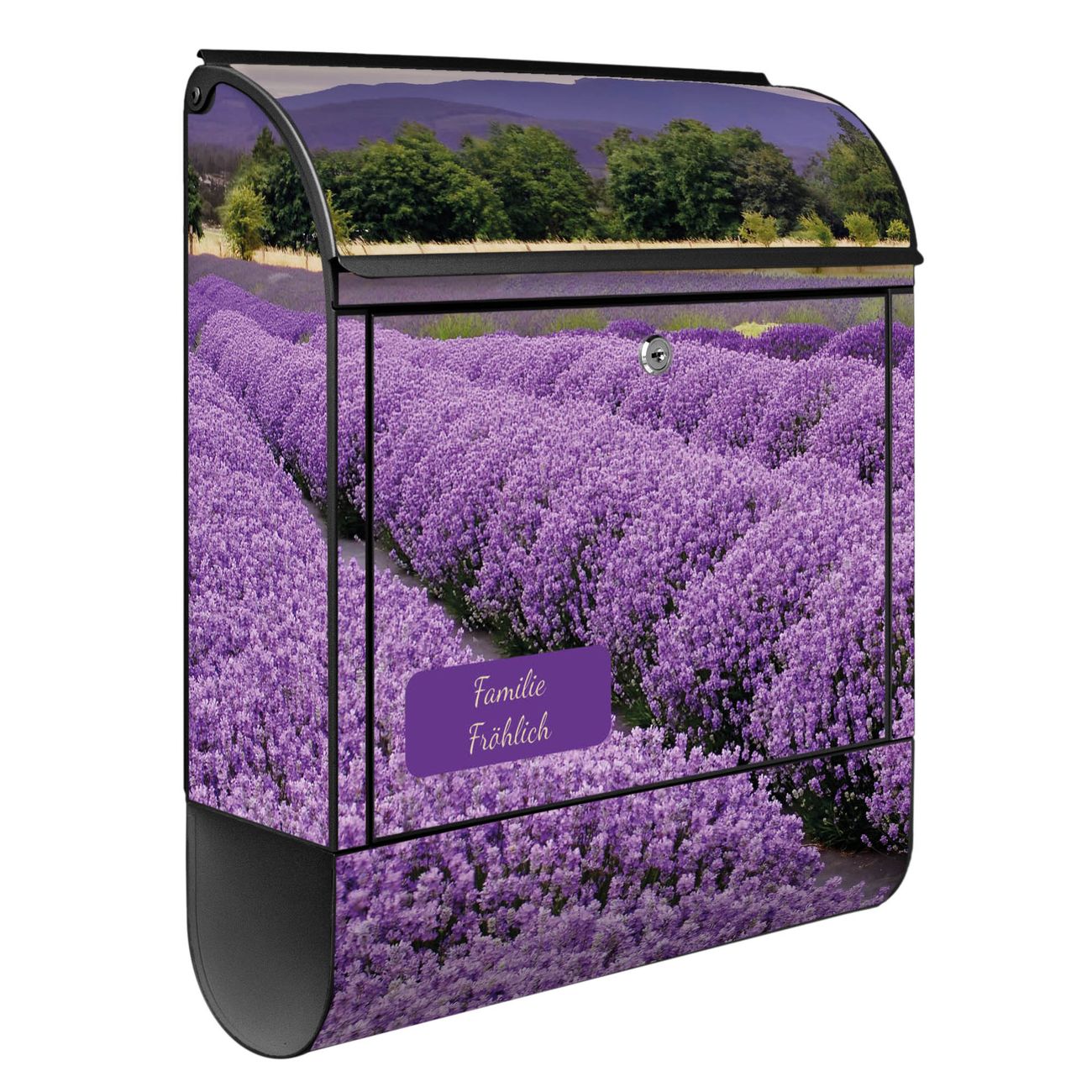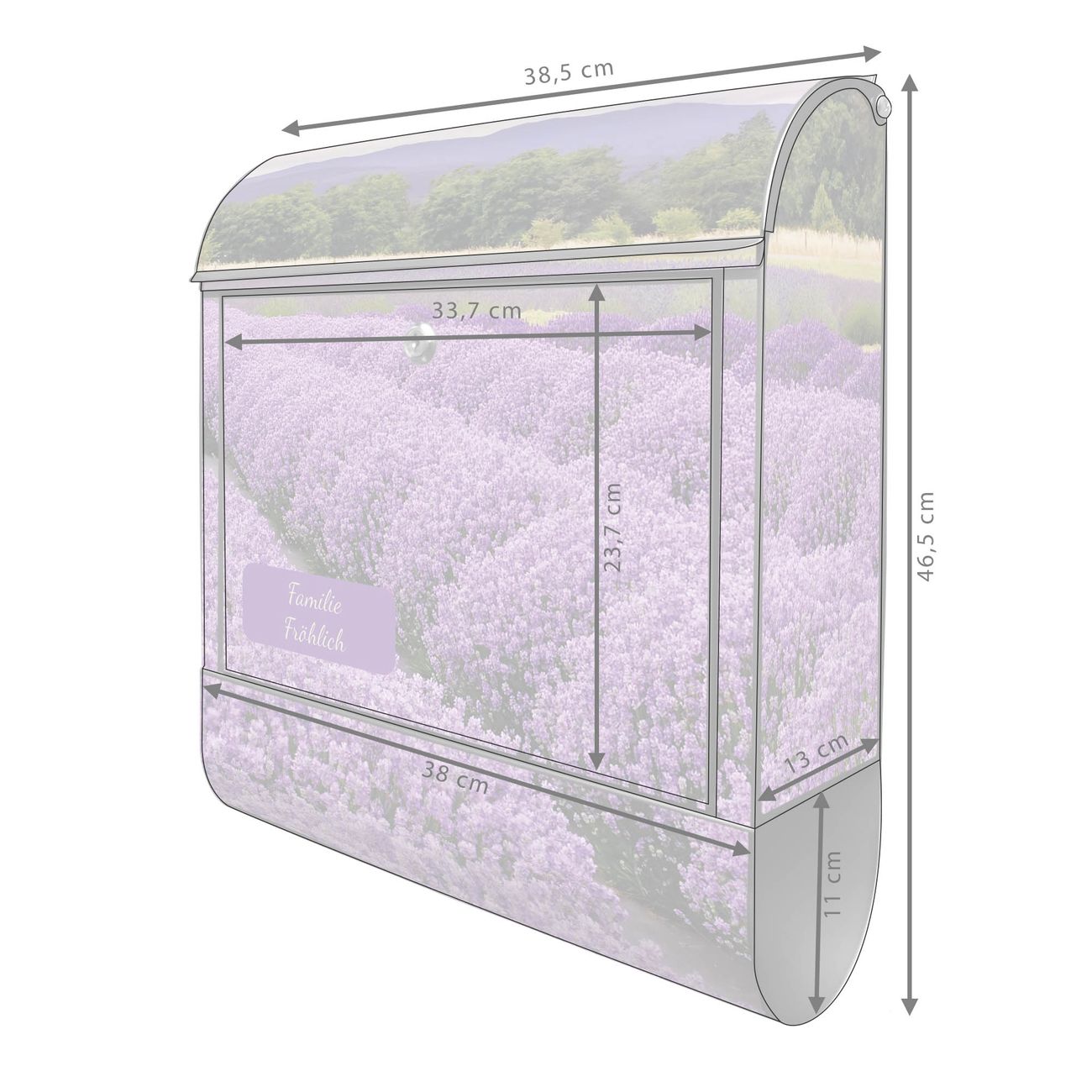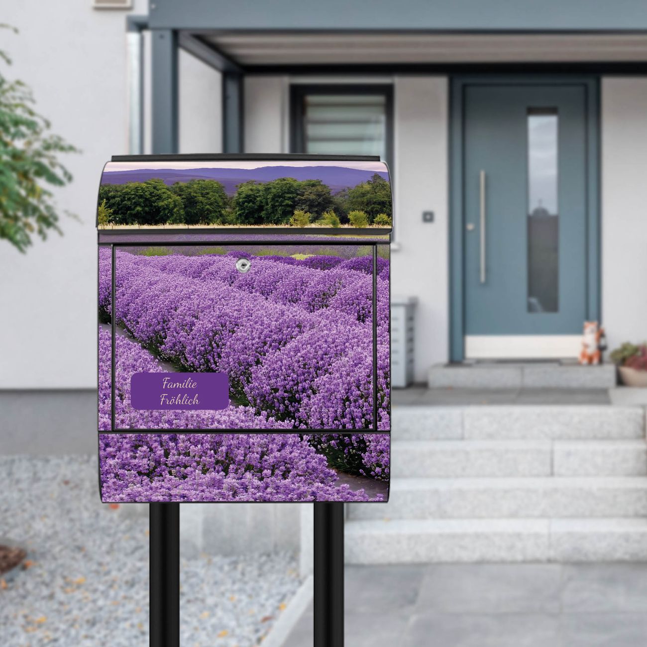 Der banjado Standbriefkasten mit Motiv Motiv Lavendel 1 kombiniert großzügigen Stauraum mit modernem Design. Durch das geräumige Fach finden auch große A4-Sendungen problemlos Platz. Die integrierte Zeitungsrolle sorgt dafür, dass Tageszeitungen und Magazine separat und griffbereit untergebracht sind. Der pulverbeschichtete Standfuß ist farblich passend zum Briefkasten gestaltet und sorgt für ein stimmiges Gesamtbild. Mit dem individuellen Motiv setzen Sie einen optischen Akzent, der sowohl praktisch als auch dekorativ ist.