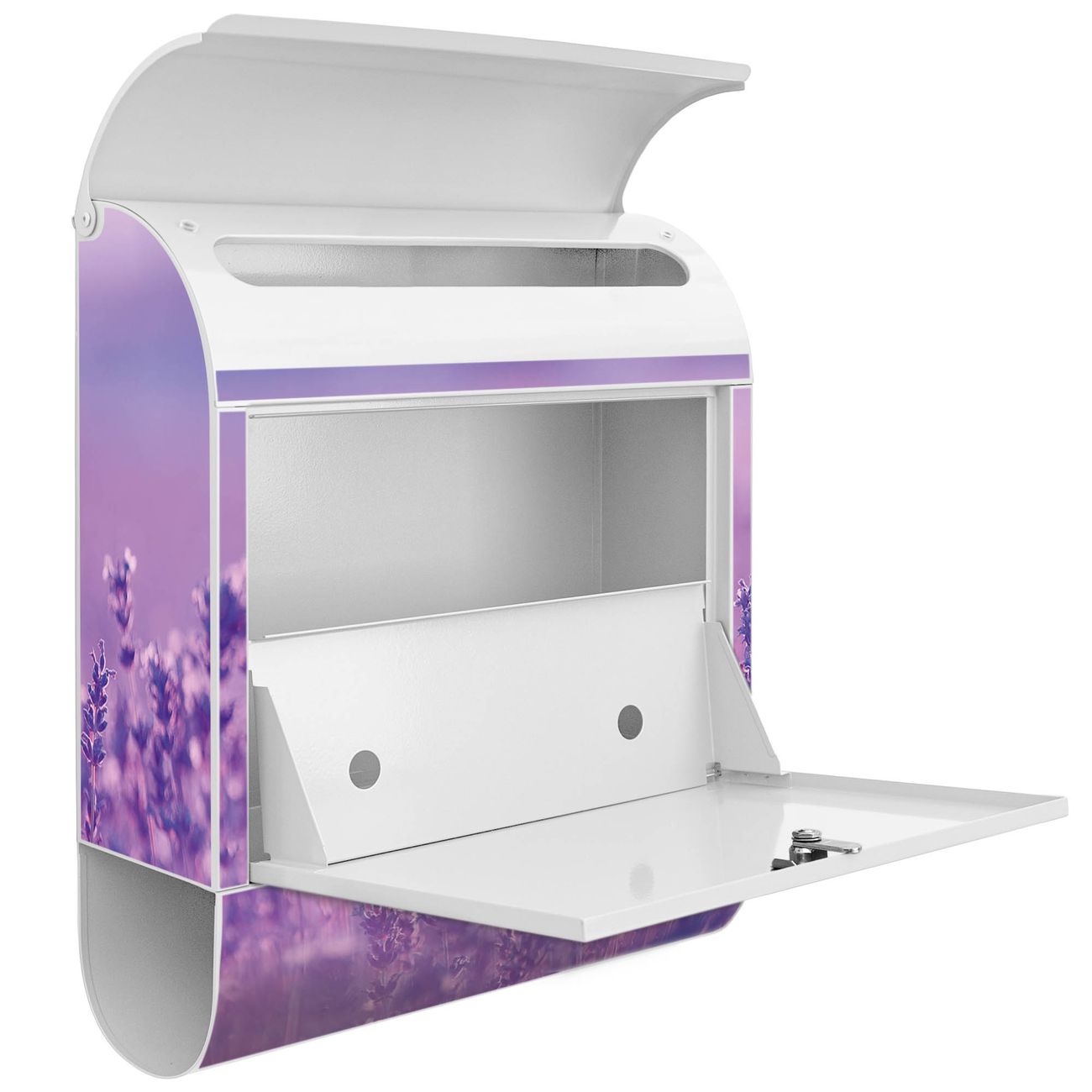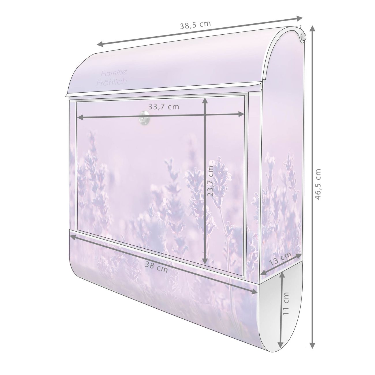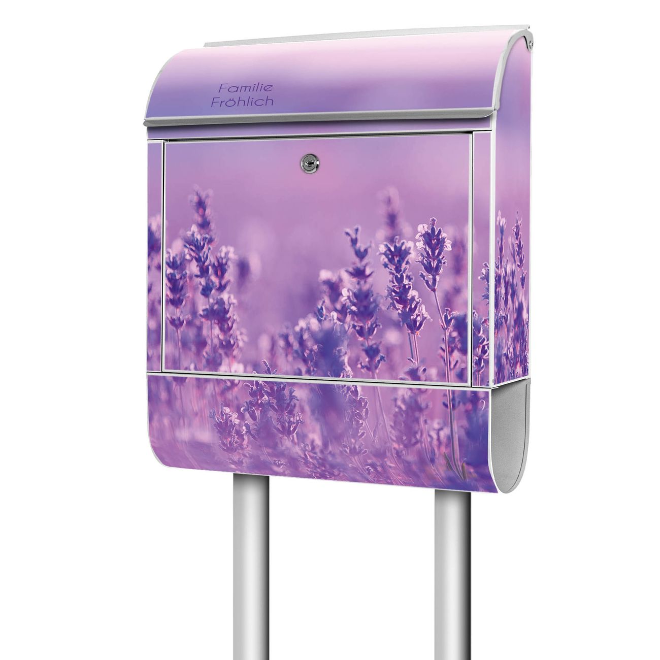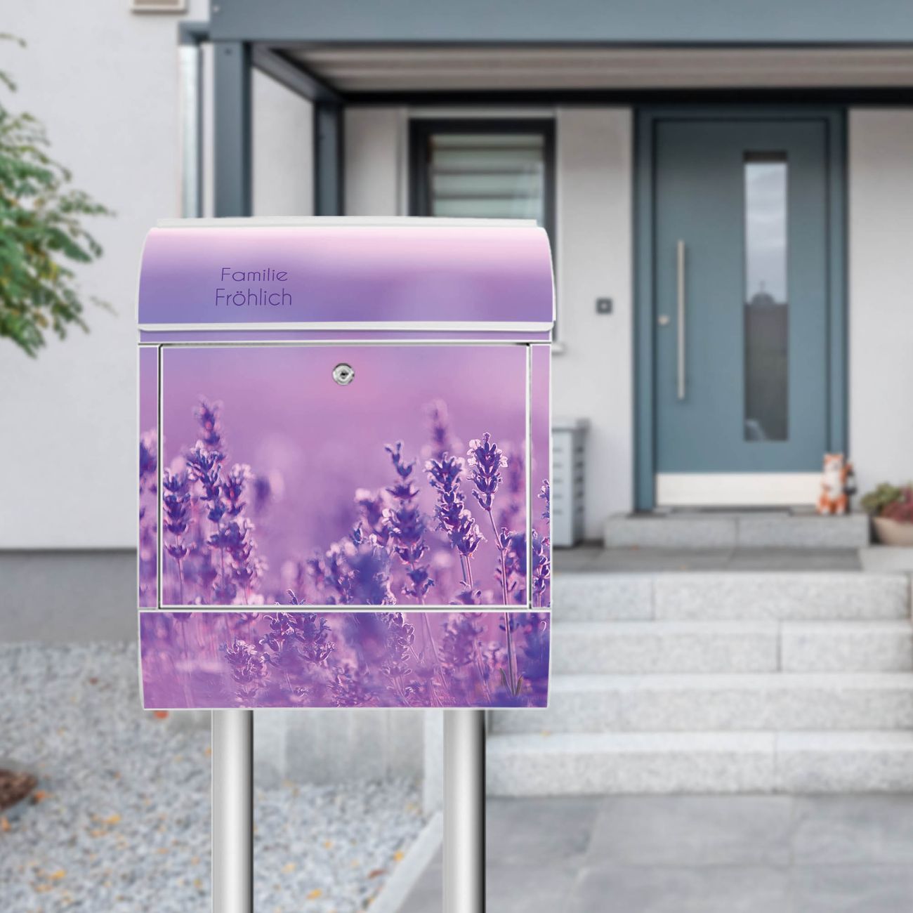 Der banjado Standbriefkasten mit Motiv Motiv Lavendelmeer kombiniert großzügigen Stauraum mit modernem Design. Durch das geräumige Fach finden auch große A4-Sendungen problemlos Platz. Die integrierte Zeitungsrolle sorgt dafür, dass Tageszeitungen und Magazine separat und griffbereit untergebracht sind. Der pulverbeschichtete Standfuß ist farblich passend zum Briefkasten gestaltet und sorgt für ein stimmiges Gesamtbild. Mit dem individuellen Motiv setzen Sie einen optischen Akzent, der sowohl praktisch als auch dekorativ ist.