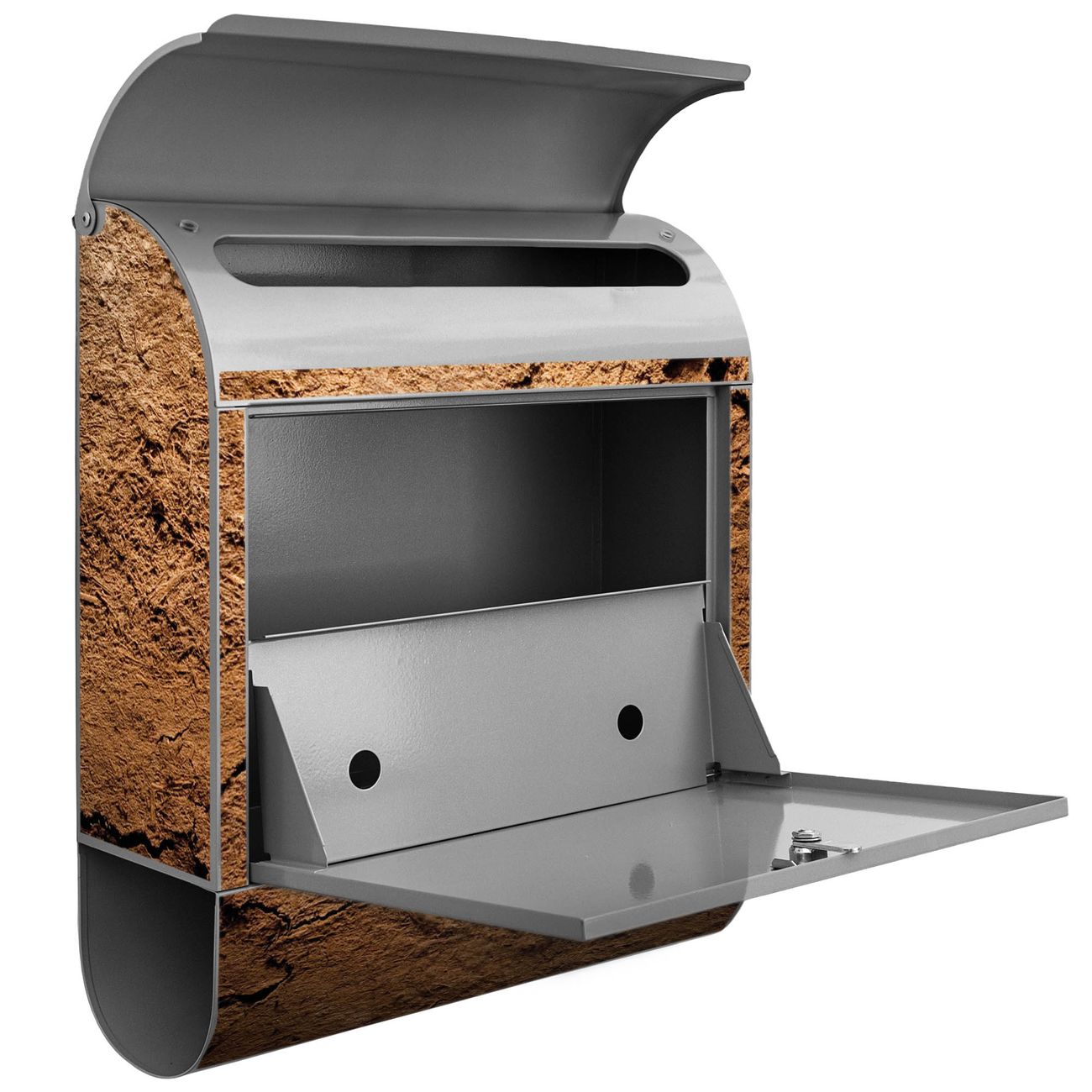 Der banjado Standbriefkasten mit Motiv Motiv Lehmboden kombiniert großzügigen Stauraum mit modernem Design. Durch das geräumige Fach finden auch große A4-Sendungen problemlos Platz. Die integrierte Zeitungsrolle sorgt dafür, dass Tageszeitungen und Magazine separat und griffbereit untergebracht sind. Der pulverbeschichtete Standfuß ist farblich passend zum Briefkasten gestaltet und sorgt für ein stimmiges Gesamtbild. Mit dem individuellen Motiv setzen Sie einen optischen Akzent, der sowohl praktisch als auch dekorativ ist.