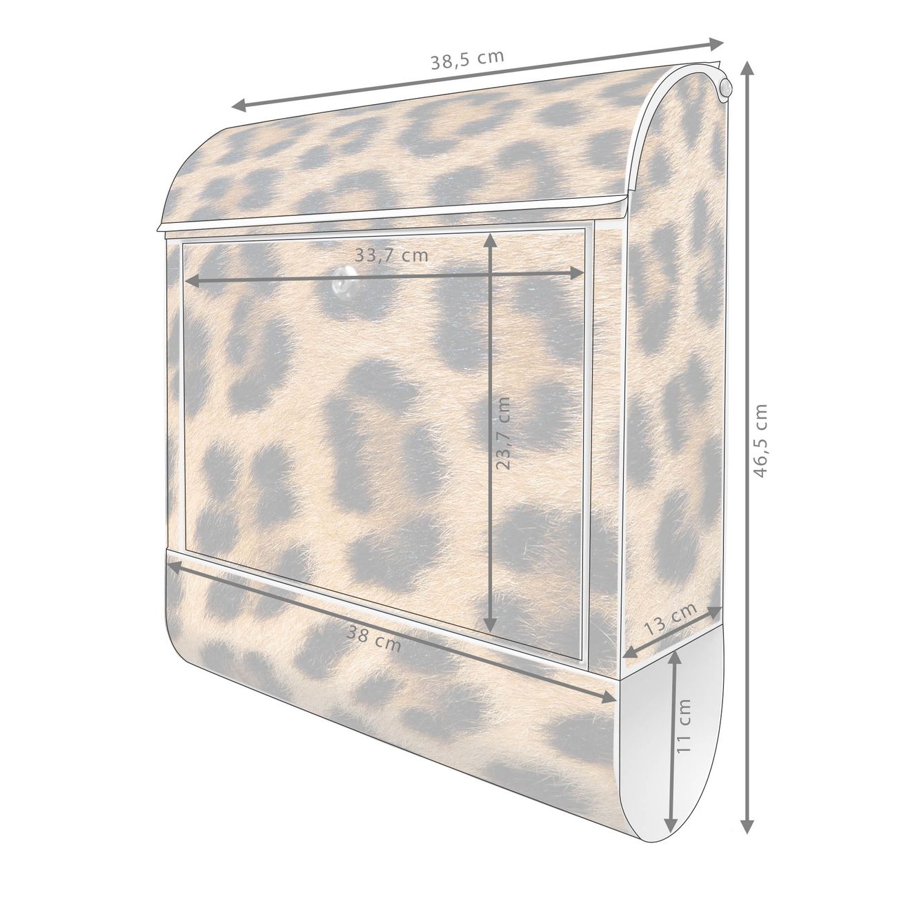 Der banjado Standbriefkasten mit Motiv Motiv Leopardenfell kombiniert großzügigen Stauraum mit modernem Design. Durch das geräumige Fach finden auch große A4-Sendungen problemlos Platz. Die integrierte Zeitungsrolle sorgt dafür, dass Tageszeitungen und Magazine separat und griffbereit untergebracht sind. Der pulverbeschichtete Standfuß ist farblich passend zum Briefkasten gestaltet und sorgt für ein stimmiges Gesamtbild. Mit dem individuellen Motiv setzen Sie einen optischen Akzent, der sowohl praktisch als auch dekorativ ist.