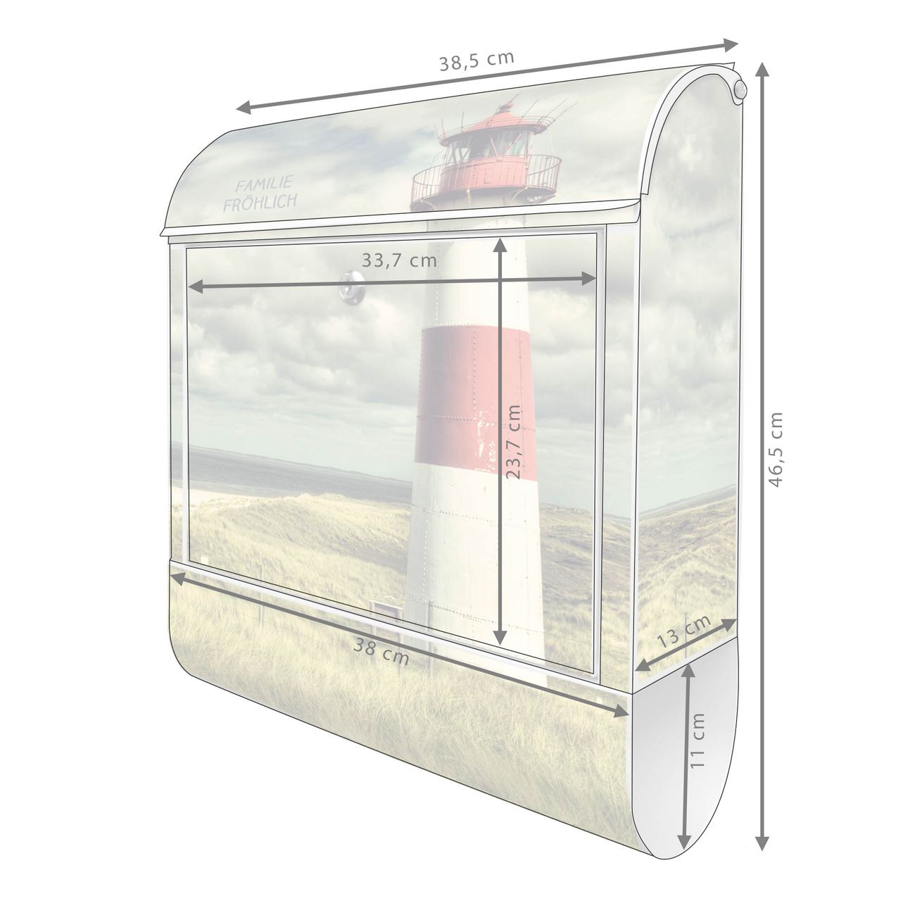 Der banjado Standbriefkasten mit Motiv Motiv Leuchtturm Sylt kombiniert großzügigen Stauraum mit modernem Design. Durch das geräumige Fach finden auch große A4-Sendungen problemlos Platz. Die integrierte Zeitungsrolle sorgt dafür, dass Tageszeitungen und Magazine separat und griffbereit untergebracht sind. Der pulverbeschichtete Standfuß ist farblich passend zum Briefkasten gestaltet und sorgt für ein stimmiges Gesamtbild. Mit dem individuellen Motiv setzen Sie einen optischen Akzent, der sowohl praktisch als auch dekorativ ist.