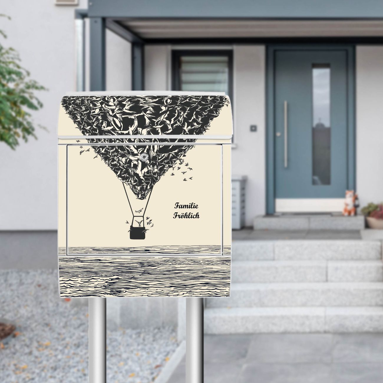 Der Standbriefkasten besteht aus pulverbeschichtetem Stahl und ist insgesamt ca. 161,5 x 47 x 16 cm groß. Das Motiv wird auf eine wetter- und UV-beständige Folie aufgebracht und mit einem robusten Schutzlaminat versiegelt. Damit bleibt die Farbbrillanz auch bei Sonne und Regen lange erhalten. Für einen sicheren Halt empfehlen wir, den Standbriefkasten mindestens 15 cm einzubetonieren. Jeder Briefkasten wird in Sachsen in einer kleinen Manufaktur von Hand veredelt - Sie erhalten ein Stück langlebige Handarbeit, das Funktionalität und Design vereint.