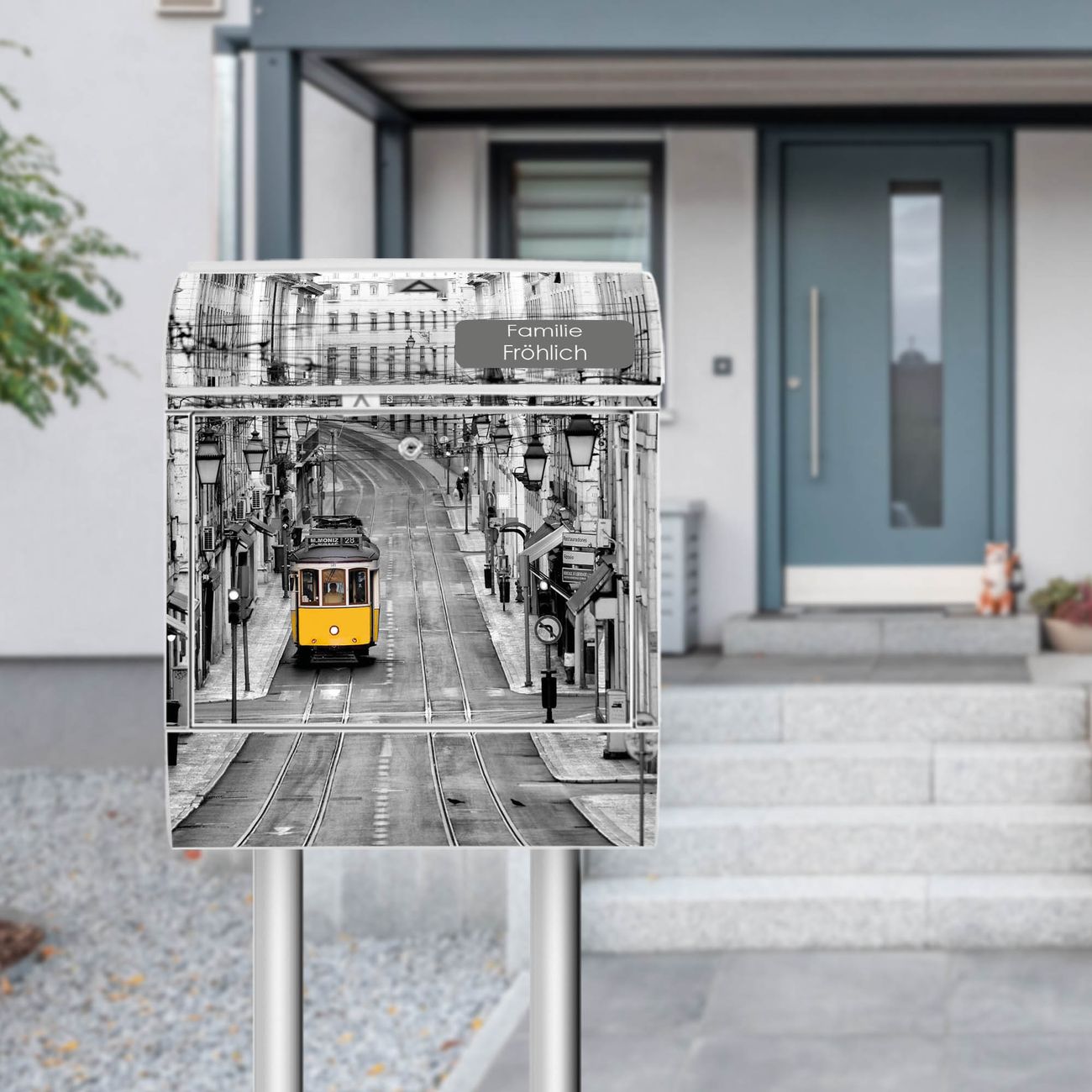 Der banjado Standbriefkasten mit Motiv Motiv Lissabon kombiniert großzügigen Stauraum mit modernem Design. Durch das geräumige Fach finden auch große A4-Sendungen problemlos Platz. Die integrierte Zeitungsrolle sorgt dafür, dass Tageszeitungen und Magazine separat und griffbereit untergebracht sind. Der pulverbeschichtete Standfuß ist farblich passend zum Briefkasten gestaltet und sorgt für ein stimmiges Gesamtbild. Mit dem individuellen Motiv setzen Sie einen optischen Akzent, der sowohl praktisch als auch dekorativ ist.