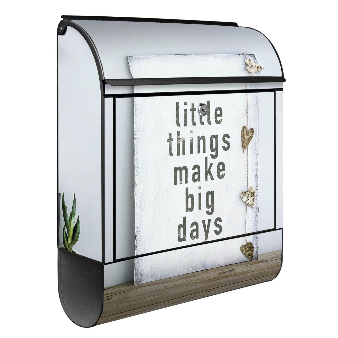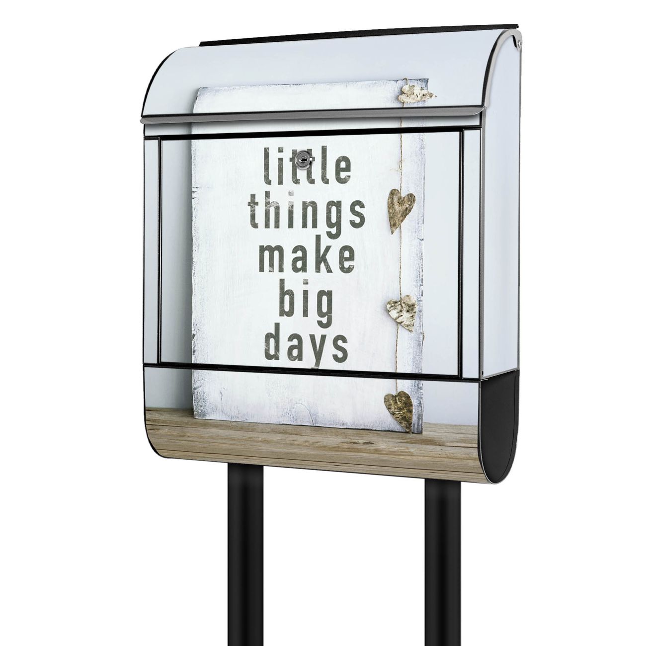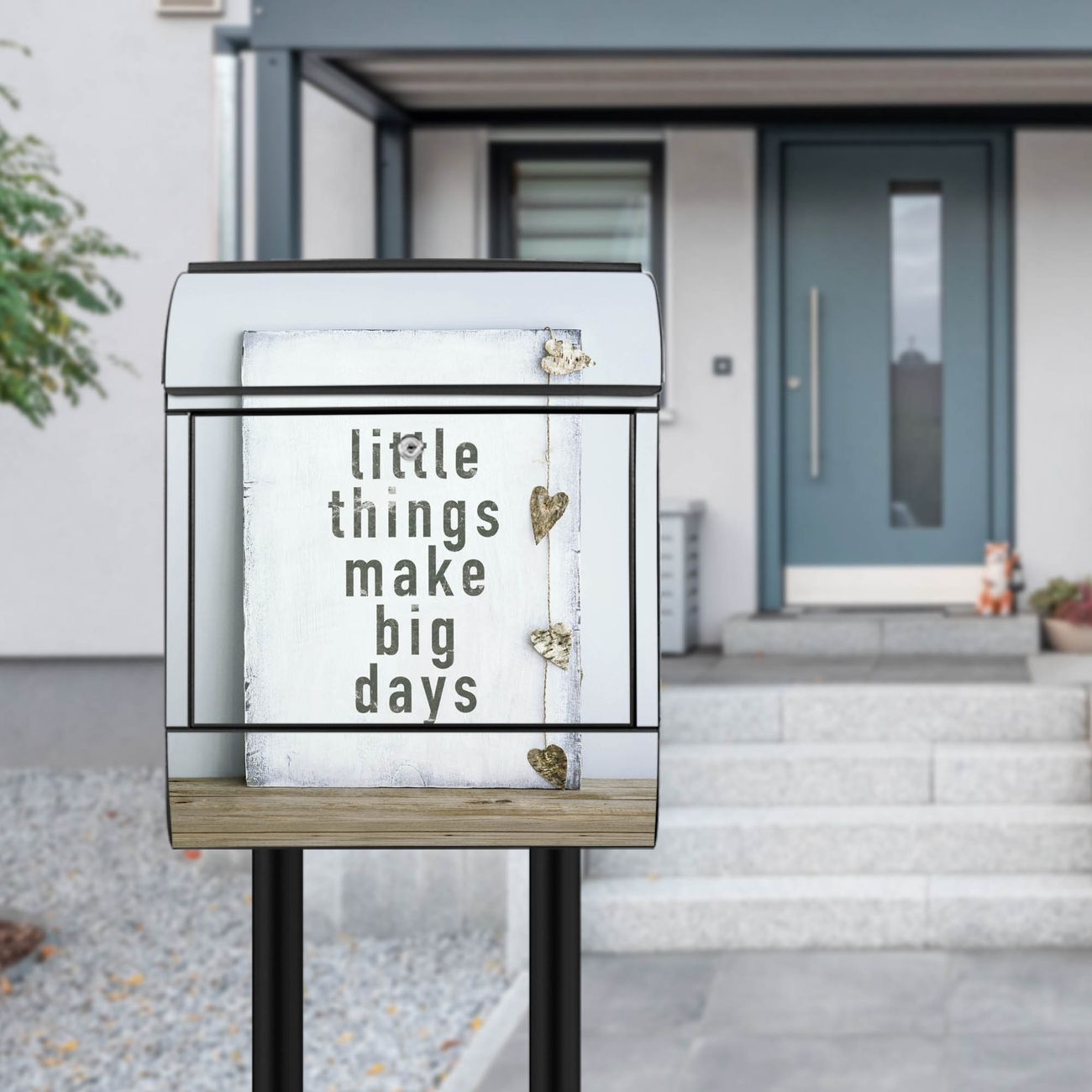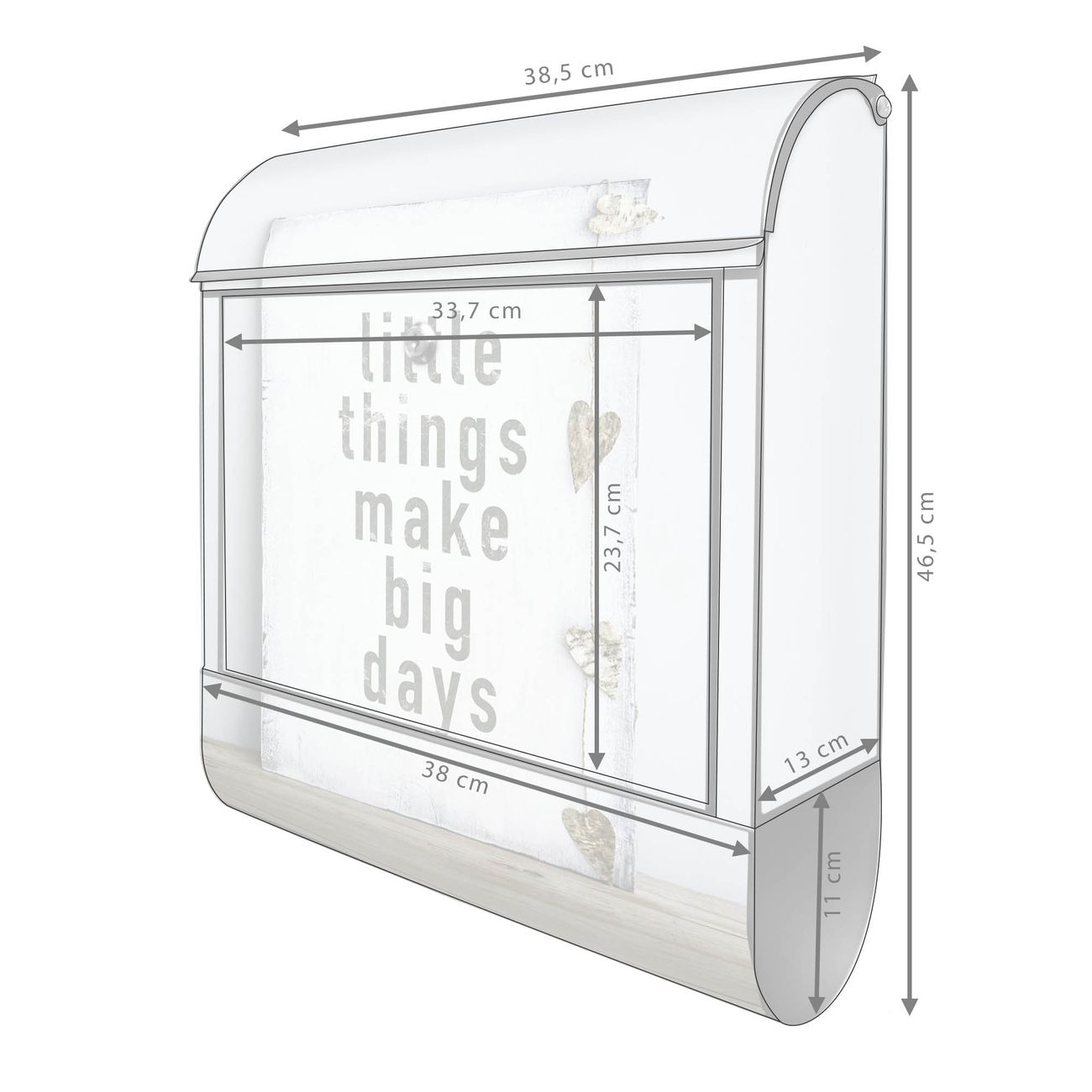 Der banjado Standbriefkasten mit Motiv Motiv Little Things kombiniert großzügigen Stauraum mit modernem Design. Durch das geräumige Fach finden auch große A4-Sendungen problemlos Platz. Die integrierte Zeitungsrolle sorgt dafür, dass Tageszeitungen und Magazine separat und griffbereit untergebracht sind. Der pulverbeschichtete Standfuß ist farblich passend zum Briefkasten gestaltet und sorgt für ein stimmiges Gesamtbild. Mit dem individuellen Motiv setzen Sie einen optischen Akzent, der sowohl praktisch als auch dekorativ ist.