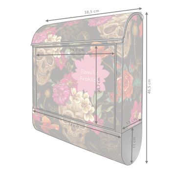 Der banjado Standbriefkasten mit Motiv Motiv Los Dias de Muertos kombiniert großzügigen Stauraum mit modernem Design. Durch das geräumige Fach finden auch große A4-Sendungen problemlos Platz. Die integrierte Zeitungsrolle sorgt dafür, dass Tageszeitungen und Magazine separat und griffbereit untergebracht sind. Der pulverbeschichtete Standfuß ist farblich passend zum Briefkasten gestaltet und sorgt für ein stimmiges Gesamtbild. Mit dem individuellen Motiv setzen Sie einen optischen Akzent, der sowohl praktisch als auch dekorativ ist.