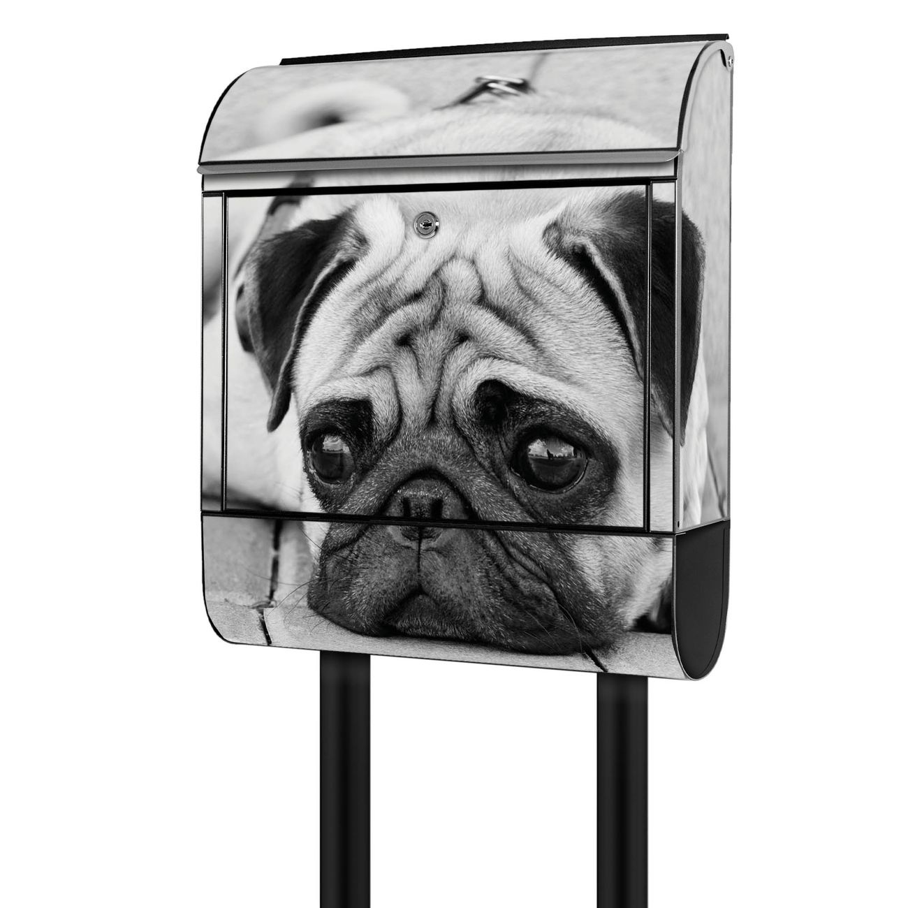 Der Standbriefkasten besteht aus pulverbeschichtetem Stahl und ist insgesamt ca. 161,5 x 47 x 16 cm groß. Das Motiv wird auf eine wetter- und UV-beständige Folie aufgebracht und mit einem robusten Schutzlaminat versiegelt. Damit bleibt die Farbbrillanz auch bei Sonne und Regen lange erhalten. Für einen sicheren Halt empfehlen wir, den Standbriefkasten mindestens 15 cm einzubetonieren. Jeder Briefkasten wird in Sachsen in einer kleinen Manufaktur von Hand veredelt - Sie erhalten ein Stück langlebige Handarbeit, das Funktionalität und Design vereint.