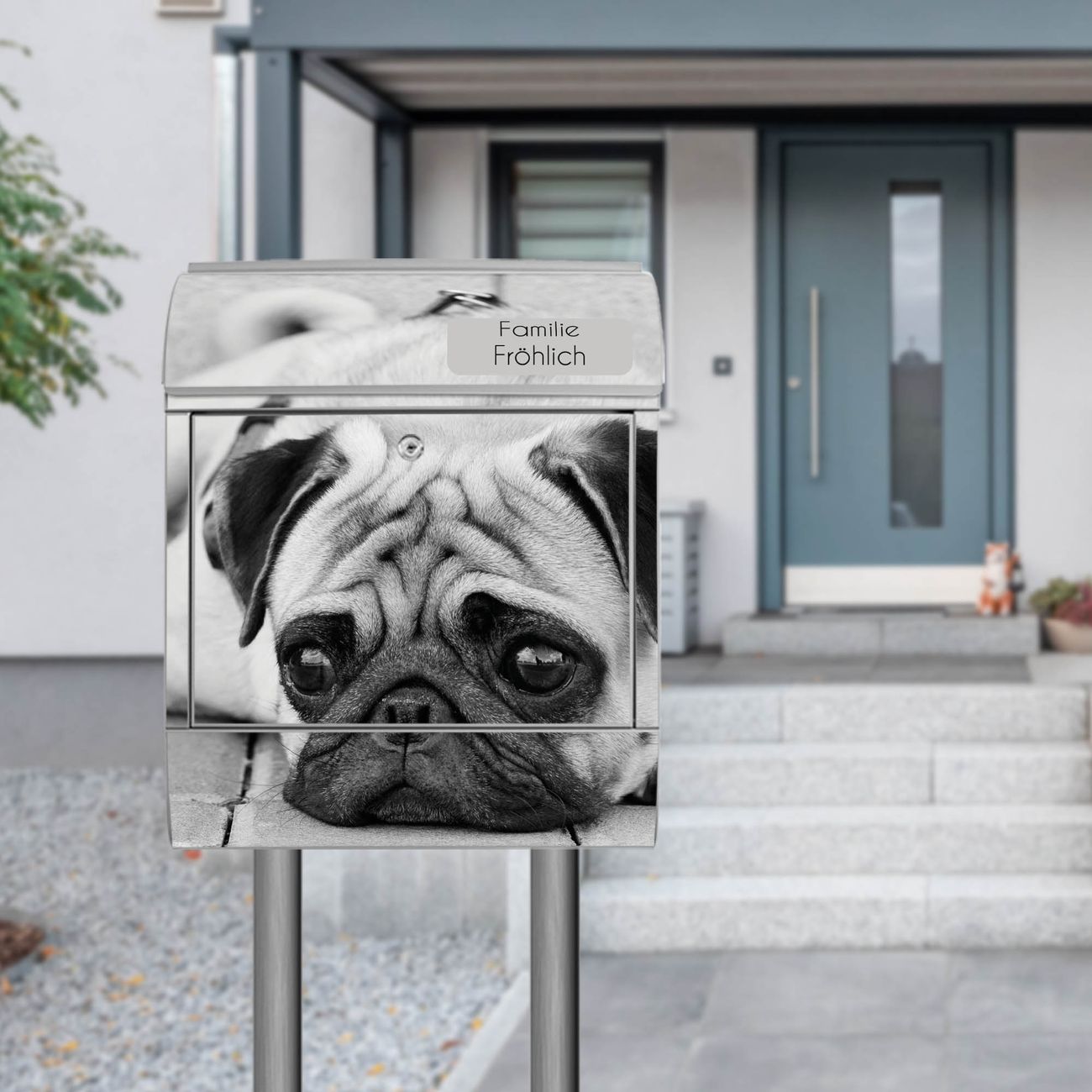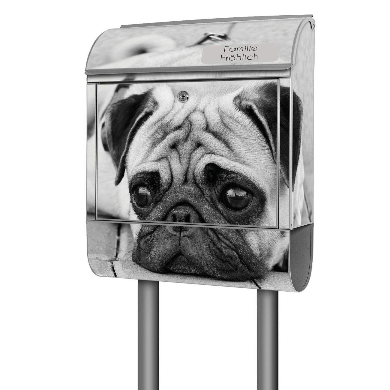 Der Standbriefkasten besteht aus pulverbeschichtetem Stahl und ist insgesamt ca. 161,5 x 47 x 16 cm groß. Das Motiv wird auf eine wetter- und UV-beständige Folie aufgebracht und mit einem robusten Schutzlaminat versiegelt. Damit bleibt die Farbbrillanz auch bei Sonne und Regen lange erhalten. Für einen sicheren Halt empfehlen wir, den Standbriefkasten mindestens 15 cm einzubetonieren. Jeder Briefkasten wird in Sachsen in einer kleinen Manufaktur von Hand veredelt - Sie erhalten ein Stück langlebige Handarbeit, das Funktionalität und Design vereint.