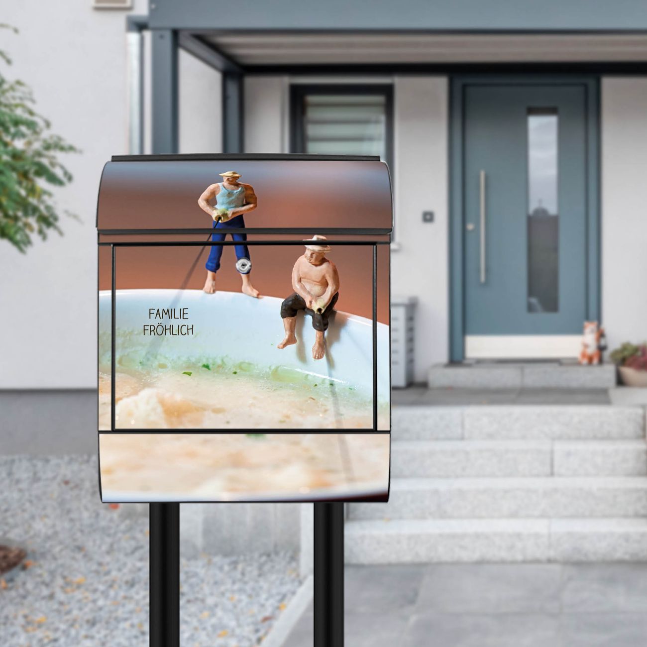 Der banjado Standbriefkasten mit Motiv Motiv Männersache kombiniert großzügigen Stauraum mit modernem Design. Durch das geräumige Fach finden auch große A4-Sendungen problemlos Platz. Die integrierte Zeitungsrolle sorgt dafür, dass Tageszeitungen und Magazine separat und griffbereit untergebracht sind. Der pulverbeschichtete Standfuß ist farblich passend zum Briefkasten gestaltet und sorgt für ein stimmiges Gesamtbild. Mit dem individuellen Motiv setzen Sie einen optischen Akzent, der sowohl praktisch als auch dekorativ ist.