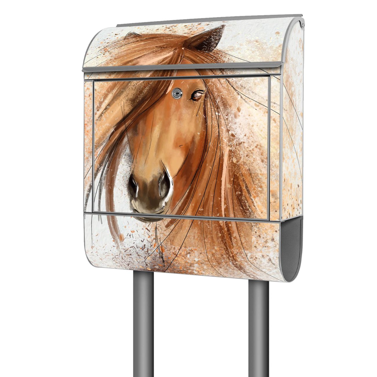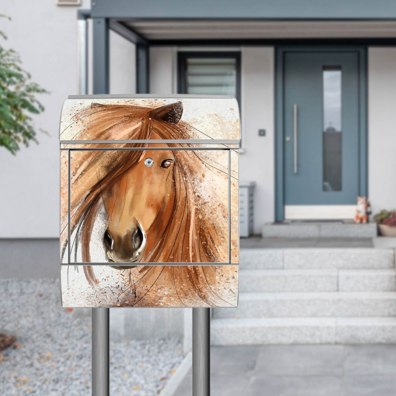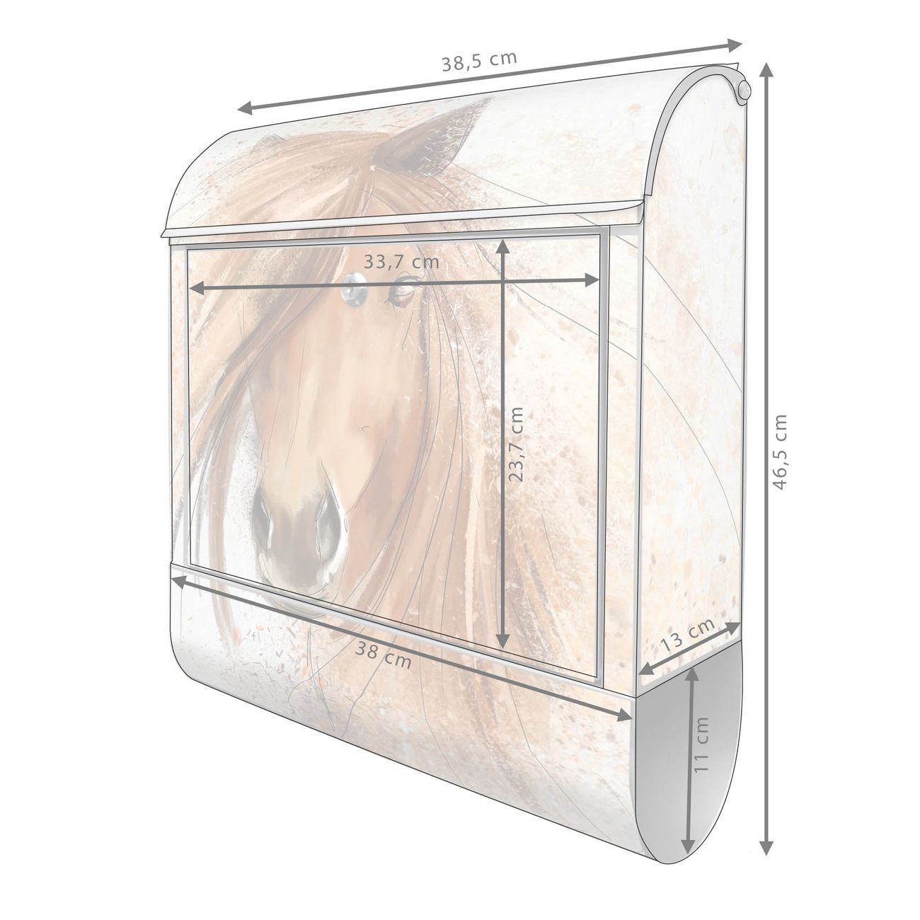 Der banjado Standbriefkasten mit Motiv Motiv Magic Horse kombiniert großzügigen Stauraum mit modernem Design. Durch das geräumige Fach finden auch große A4-Sendungen problemlos Platz. Die integrierte Zeitungsrolle sorgt dafür, dass Tageszeitungen und Magazine separat und griffbereit untergebracht sind. Der pulverbeschichtete Standfuß ist farblich passend zum Briefkasten gestaltet und sorgt für ein stimmiges Gesamtbild. Mit dem individuellen Motiv setzen Sie einen optischen Akzent, der sowohl praktisch als auch dekorativ ist.
