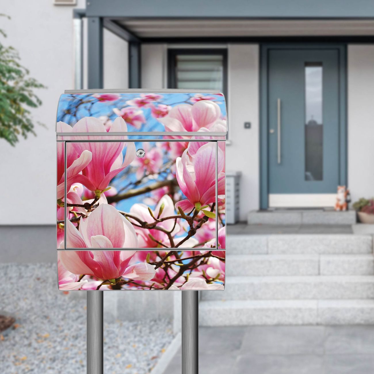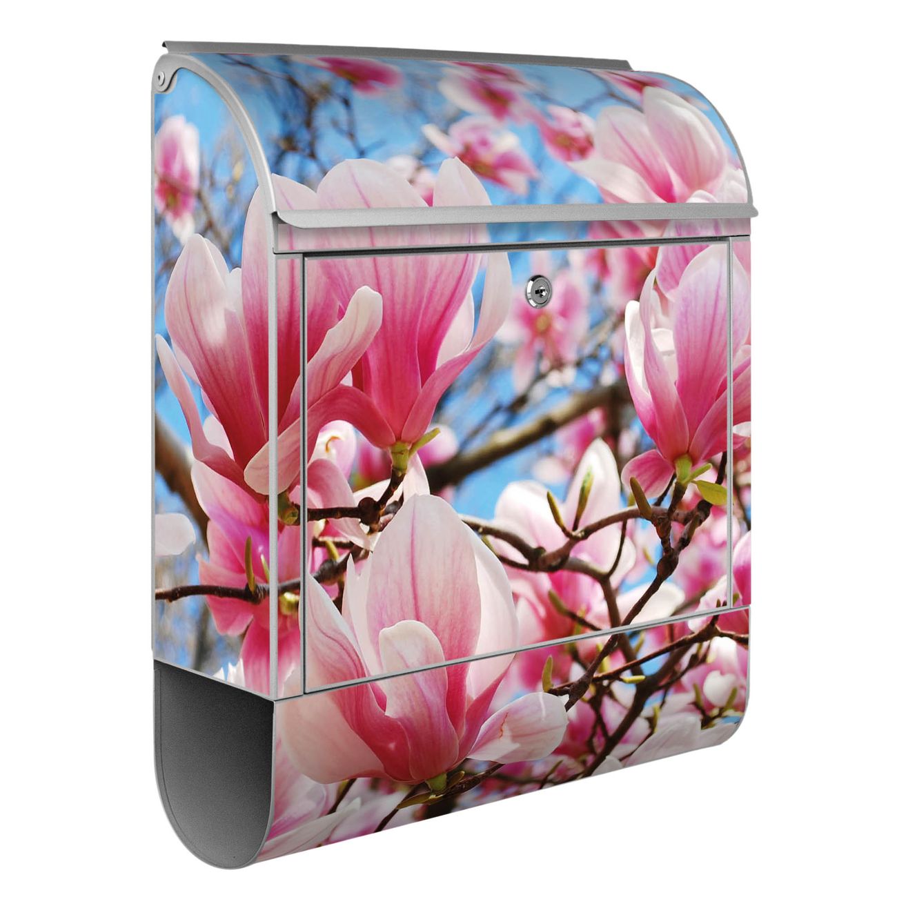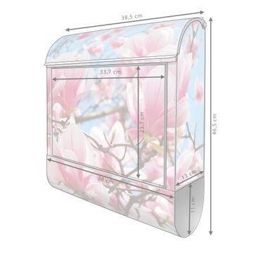 Der banjado Standbriefkasten mit Motiv Motiv Magnolienbaum kombiniert großzügigen Stauraum mit modernem Design. Durch das geräumige Fach finden auch große A4-Sendungen problemlos Platz. Die integrierte Zeitungsrolle sorgt dafür, dass Tageszeitungen und Magazine separat und griffbereit untergebracht sind. Der pulverbeschichtete Standfuß ist farblich passend zum Briefkasten gestaltet und sorgt für ein stimmiges Gesamtbild. Mit dem individuellen Motiv setzen Sie einen optischen Akzent, der sowohl praktisch als auch dekorativ ist.