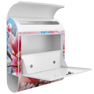 Der banjado Standbriefkasten mit Motiv Motiv Magnolienbaum kombiniert großzügigen Stauraum mit modernem Design. Durch das geräumige Fach finden auch große A4-Sendungen problemlos Platz. Die integrierte Zeitungsrolle sorgt dafür, dass Tageszeitungen und Magazine separat und griffbereit untergebracht sind. Der pulverbeschichtete Standfuß ist farblich passend zum Briefkasten gestaltet und sorgt für ein stimmiges Gesamtbild. Mit dem individuellen Motiv setzen Sie einen optischen Akzent, der sowohl praktisch als auch dekorativ ist.
