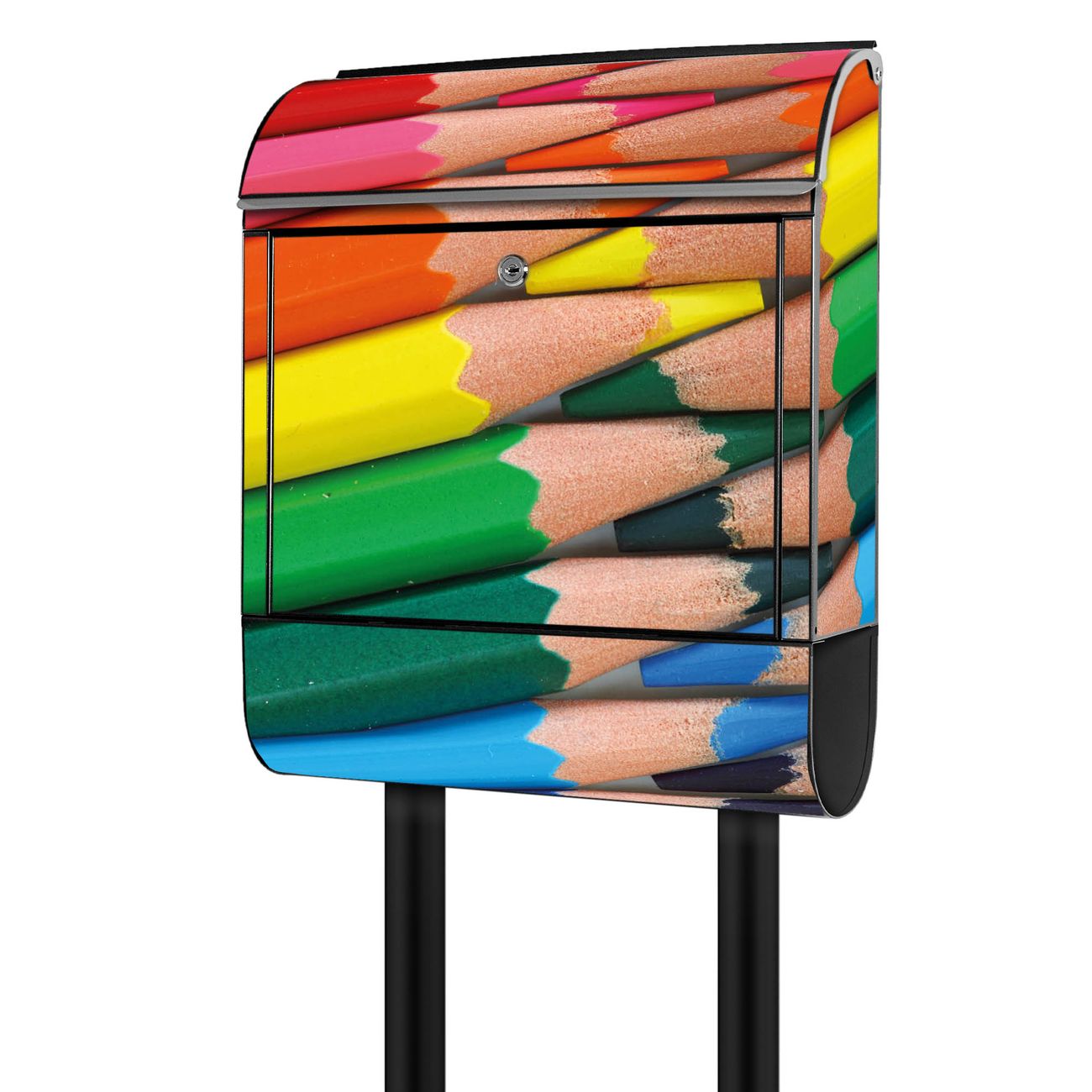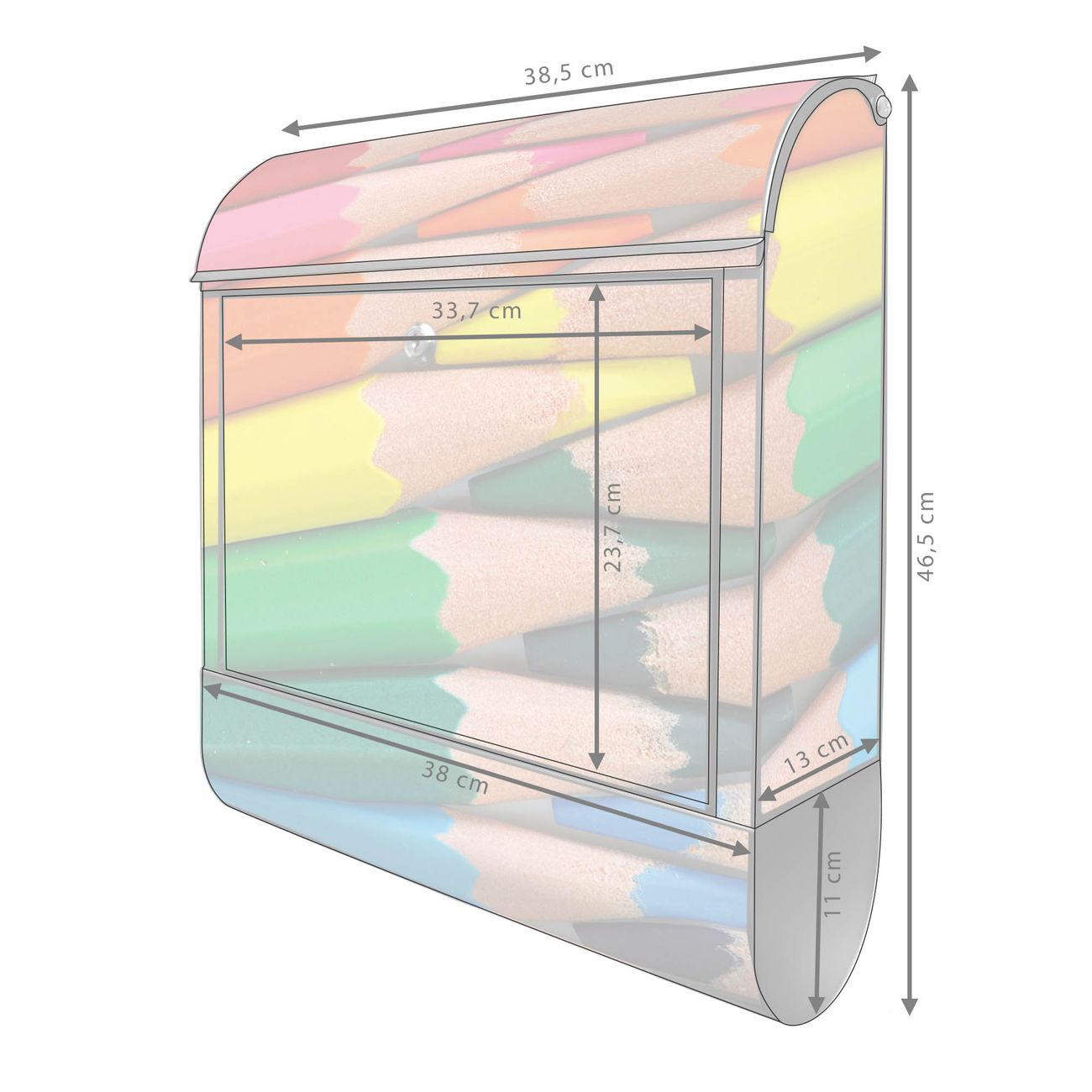 Der banjado Standbriefkasten mit Motiv Motiv Malstifte kombiniert großzügigen Stauraum mit modernem Design. Durch das geräumige Fach finden auch große A4-Sendungen problemlos Platz. Die integrierte Zeitungsrolle sorgt dafür, dass Tageszeitungen und Magazine separat und griffbereit untergebracht sind. Der pulverbeschichtete Standfuß ist farblich passend zum Briefkasten gestaltet und sorgt für ein stimmiges Gesamtbild. Mit dem individuellen Motiv setzen Sie einen optischen Akzent, der sowohl praktisch als auch dekorativ ist.