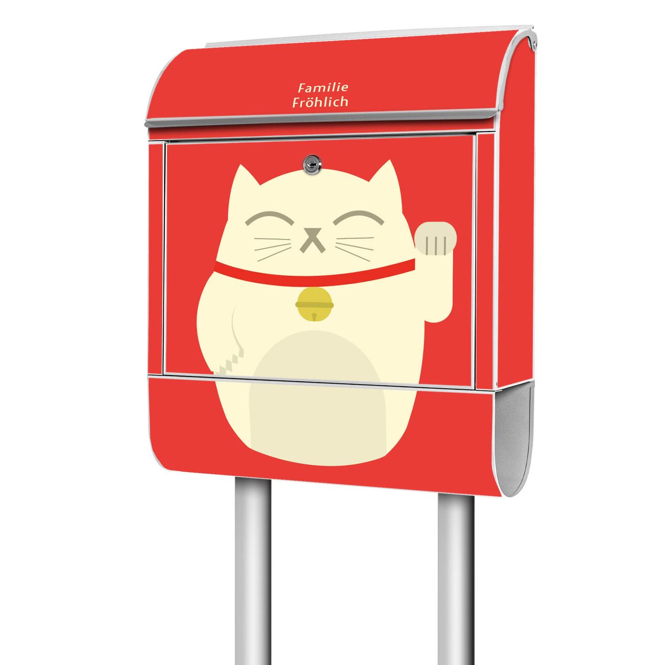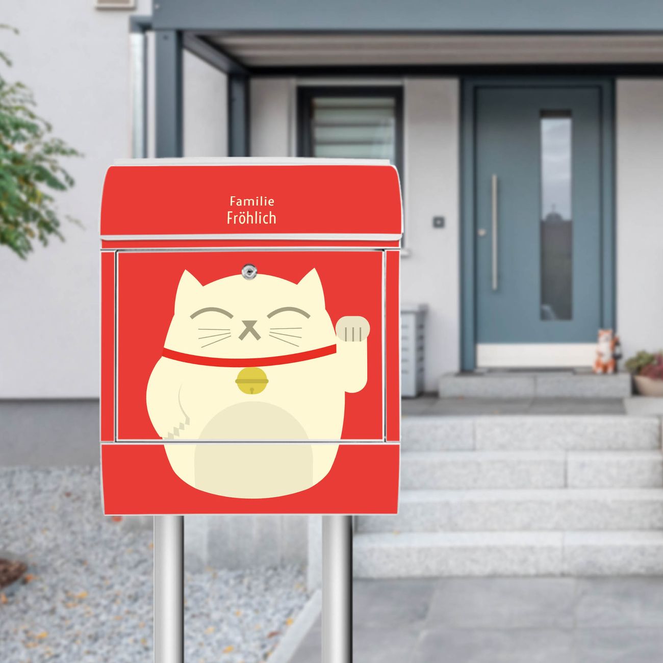 Der banjado Standbriefkasten mit Motiv Motiv Manekineko kombiniert großzügigen Stauraum mit modernem Design. Durch das geräumige Fach finden auch große A4-Sendungen problemlos Platz. Die integrierte Zeitungsrolle sorgt dafür, dass Tageszeitungen und Magazine separat und griffbereit untergebracht sind. Der pulverbeschichtete Standfuß ist farblich passend zum Briefkasten gestaltet und sorgt für ein stimmiges Gesamtbild. Mit dem individuellen Motiv setzen Sie einen optischen Akzent, der sowohl praktisch als auch dekorativ ist.