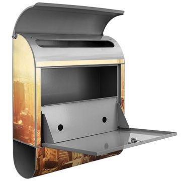 Der banjado Standbriefkasten mit Motiv Motiv Manhattan 2 kombiniert großzügigen Stauraum mit modernem Design. Durch das geräumige Fach finden auch große A4-Sendungen problemlos Platz. Die integrierte Zeitungsrolle sorgt dafür, dass Tageszeitungen und Magazine separat und griffbereit untergebracht sind. Der pulverbeschichtete Standfuß ist farblich passend zum Briefkasten gestaltet und sorgt für ein stimmiges Gesamtbild. Mit dem individuellen Motiv setzen Sie einen optischen Akzent, der sowohl praktisch als auch dekorativ ist.