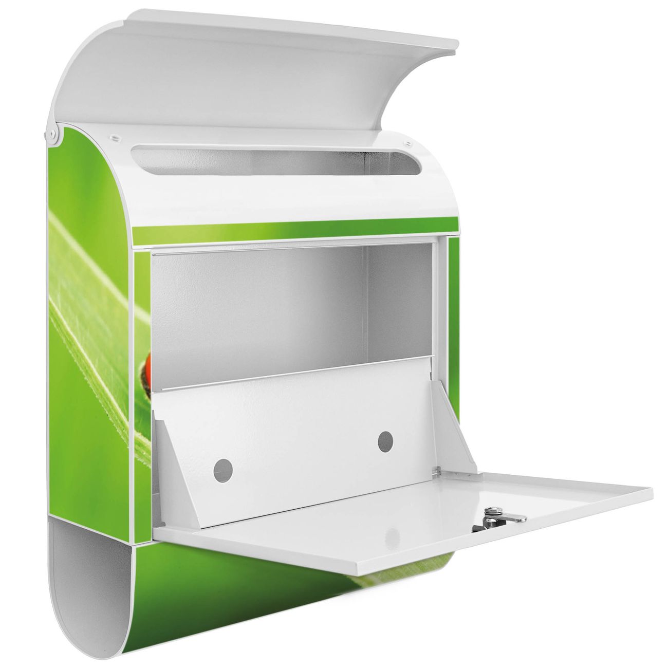 Der banjado Standbriefkasten mit Motiv Motiv Marienkäfer kombiniert großzügigen Stauraum mit modernem Design. Durch das geräumige Fach finden auch große A4-Sendungen problemlos Platz. Die integrierte Zeitungsrolle sorgt dafür, dass Tageszeitungen und Magazine separat und griffbereit untergebracht sind. Der pulverbeschichtete Standfuß ist farblich passend zum Briefkasten gestaltet und sorgt für ein stimmiges Gesamtbild. Mit dem individuellen Motiv setzen Sie einen optischen Akzent, der sowohl praktisch als auch dekorativ ist.