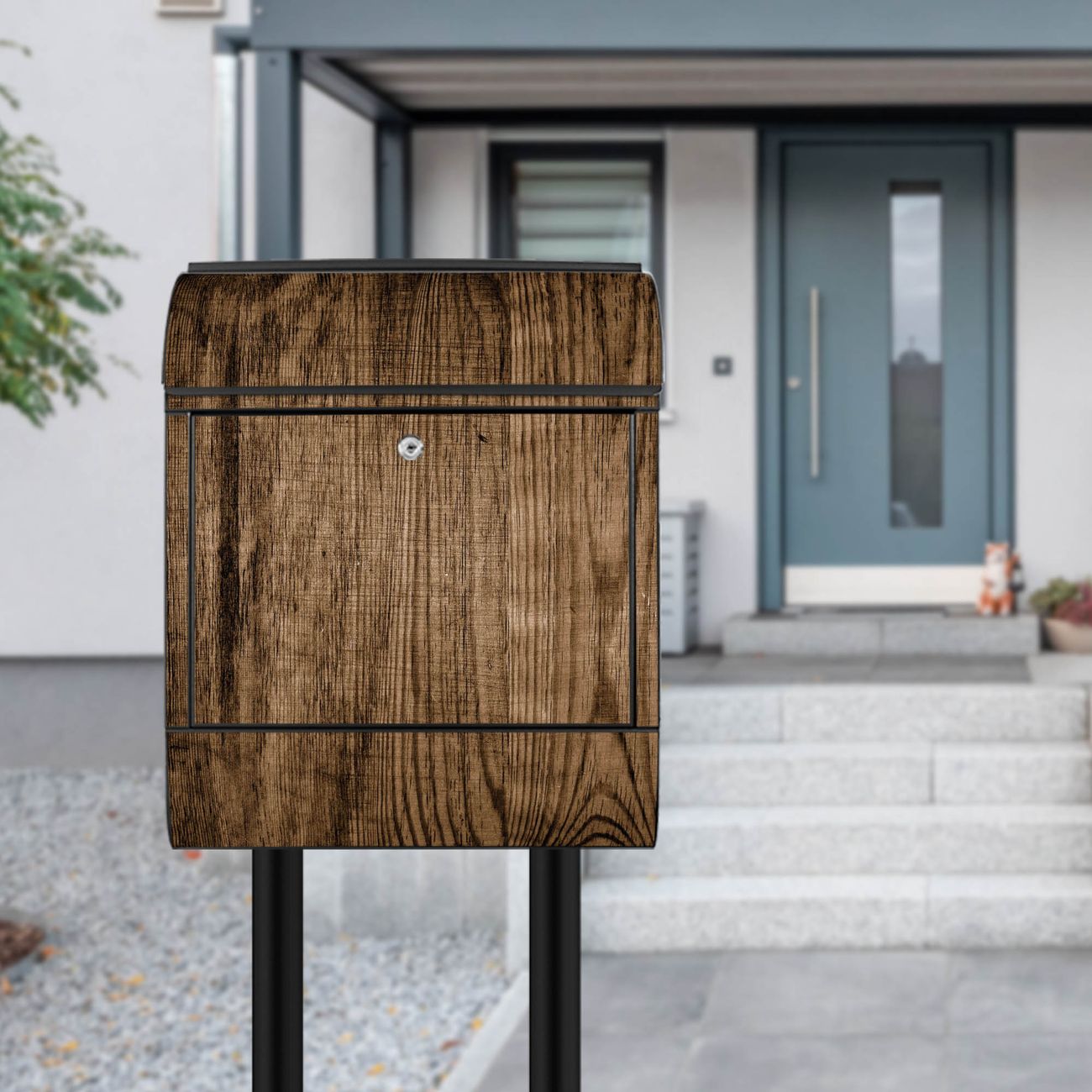 Der banjado Standbriefkasten mit Motiv Motiv Maserung Dunkel kombiniert großzügigen Stauraum mit modernem Design. Durch das geräumige Fach finden auch große A4-Sendungen problemlos Platz. Die integrierte Zeitungsrolle sorgt dafür, dass Tageszeitungen und Magazine separat und griffbereit untergebracht sind. Der pulverbeschichtete Standfuß ist farblich passend zum Briefkasten gestaltet und sorgt für ein stimmiges Gesamtbild. Mit dem individuellen Motiv setzen Sie einen optischen Akzent, der sowohl praktisch als auch dekorativ ist.