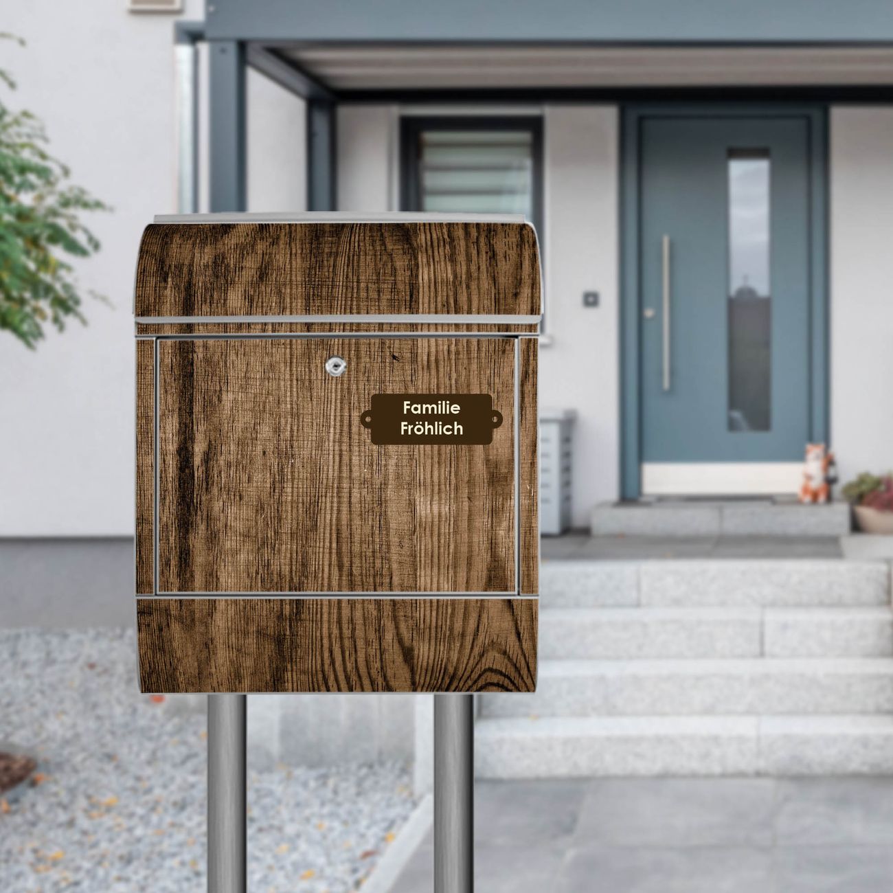 Standbriefkasten Stahl Maserung Dunkel