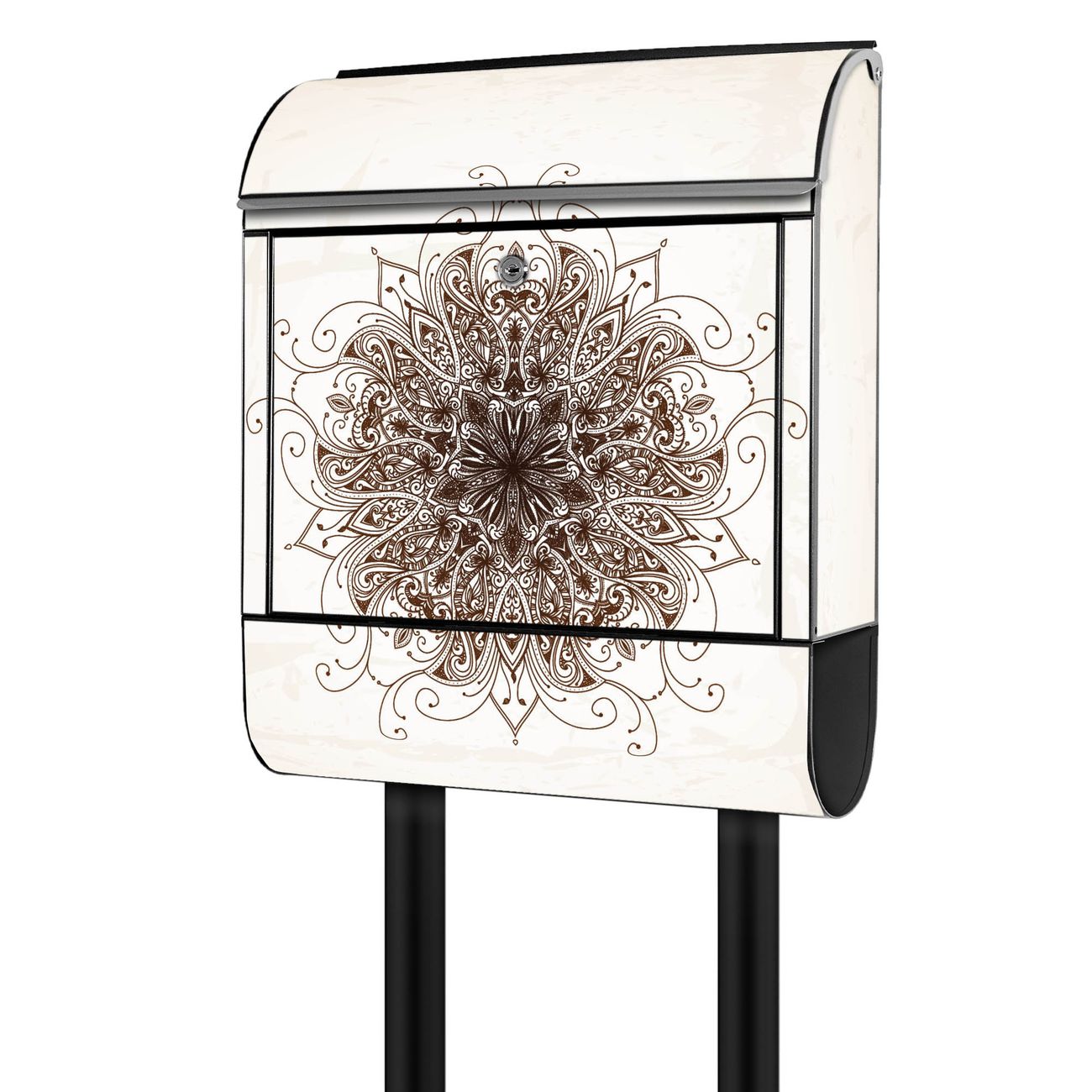 Der banjado Standbriefkasten mit Motiv Motiv Mehendi kombiniert großzügigen Stauraum mit modernem Design. Durch das geräumige Fach finden auch große A4-Sendungen problemlos Platz. Die integrierte Zeitungsrolle sorgt dafür, dass Tageszeitungen und Magazine separat und griffbereit untergebracht sind. Der pulverbeschichtete Standfuß ist farblich passend zum Briefkasten gestaltet und sorgt für ein stimmiges Gesamtbild. Mit dem individuellen Motiv setzen Sie einen optischen Akzent, der sowohl praktisch als auch dekorativ ist.