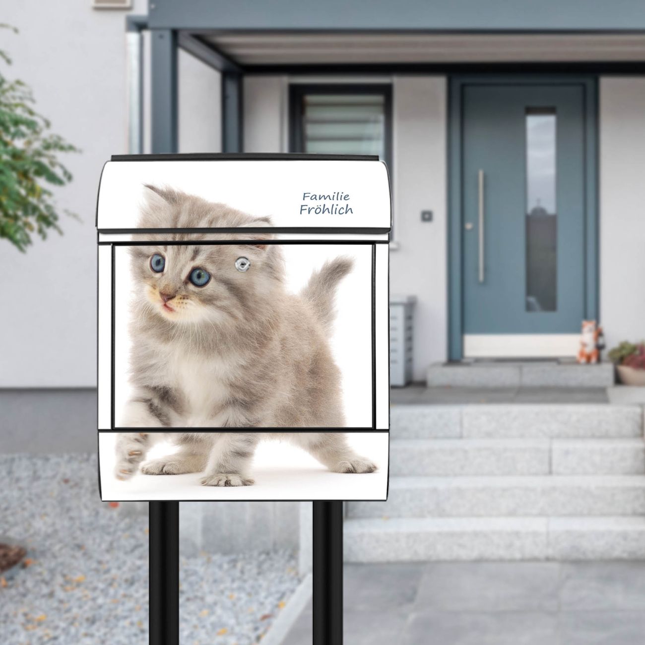 Der banjado Standbriefkasten mit Motiv Motiv Miau kombiniert großzügigen Stauraum mit modernem Design. Durch das geräumige Fach finden auch große A4-Sendungen problemlos Platz. Die integrierte Zeitungsrolle sorgt dafür, dass Tageszeitungen und Magazine separat und griffbereit untergebracht sind. Der pulverbeschichtete Standfuß ist farblich passend zum Briefkasten gestaltet und sorgt für ein stimmiges Gesamtbild. Mit dem individuellen Motiv setzen Sie einen optischen Akzent, der sowohl praktisch als auch dekorativ ist.