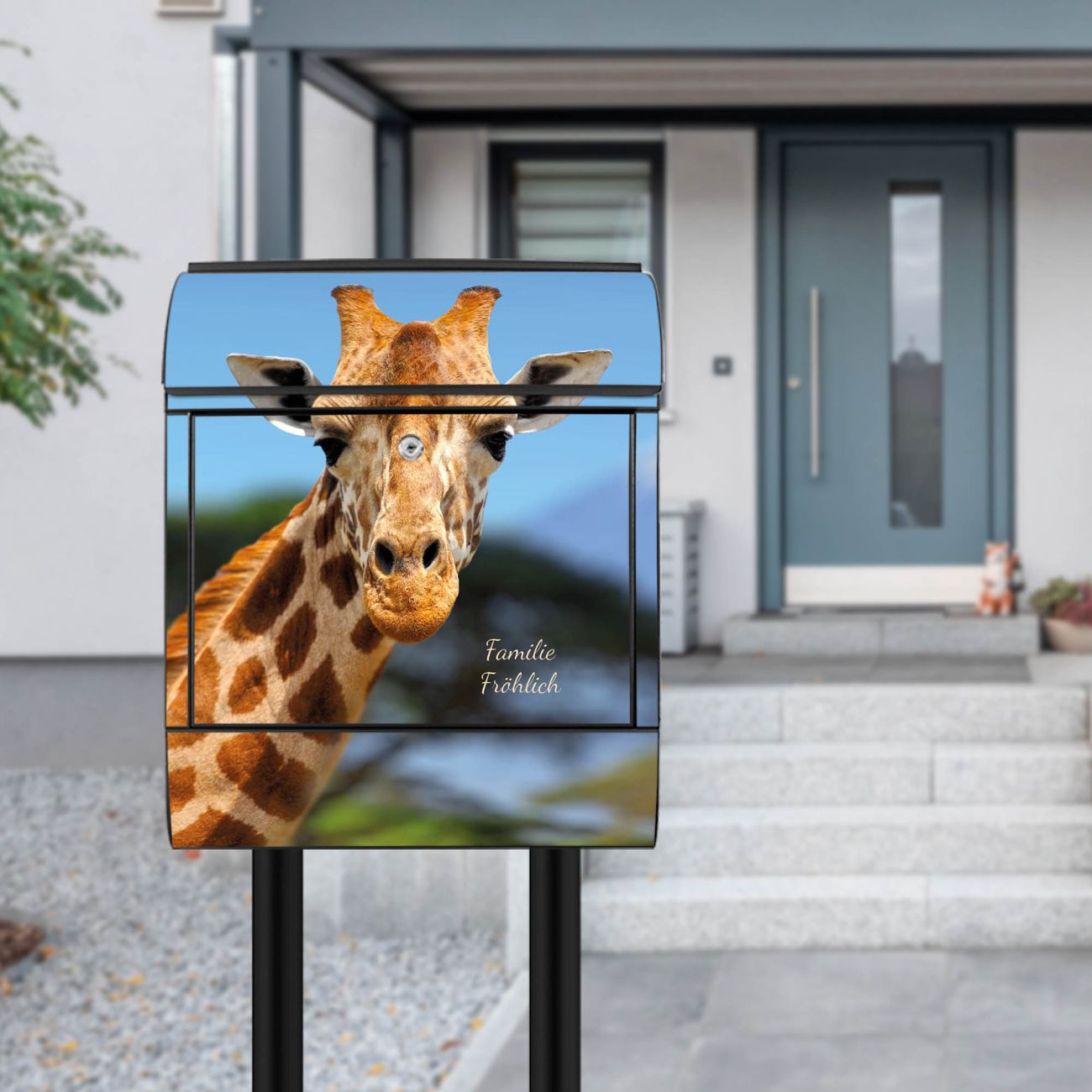 Der Vorschau-Text Familie Fröhlich wird durch Ihren persönlichen Wunschtext ersetzt. Die Schriftart und Farbe bleiben gleich wie in der Vorschau.