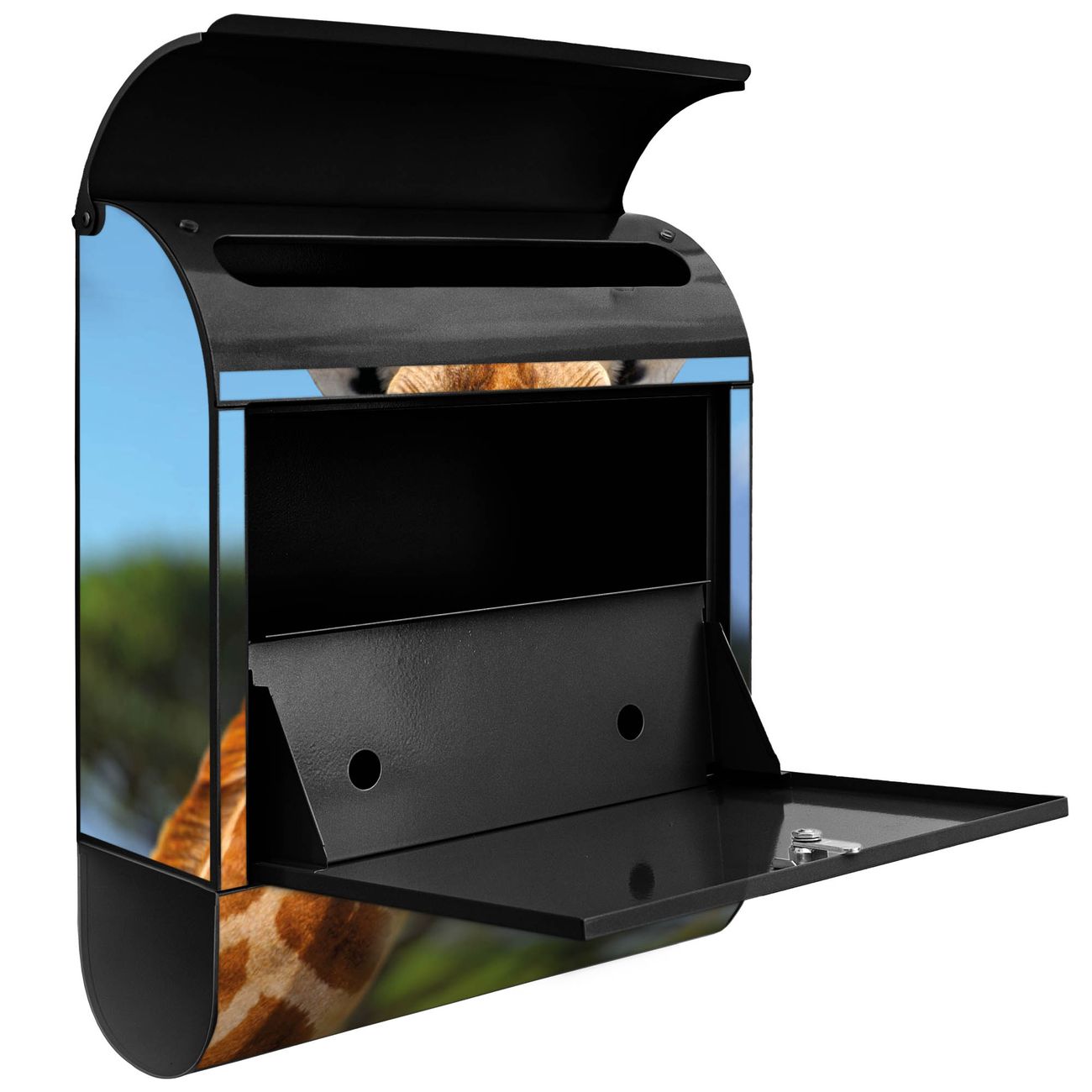 Der banjado Standbriefkasten mit Motiv Motiv Miss Kilimandscharo kombiniert großzügigen Stauraum mit modernem Design. Durch das geräumige Fach finden auch große A4-Sendungen problemlos Platz. Die integrierte Zeitungsrolle sorgt dafür, dass Tageszeitungen und Magazine separat und griffbereit untergebracht sind. Der pulverbeschichtete Standfuß ist farblich passend zum Briefkasten gestaltet und sorgt für ein stimmiges Gesamtbild. Mit dem individuellen Motiv setzen Sie einen optischen Akzent, der sowohl praktisch als auch dekorativ ist.