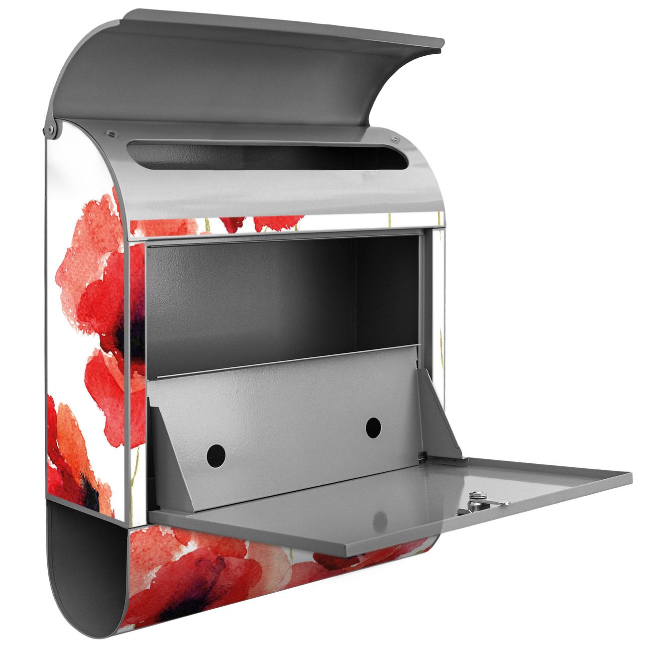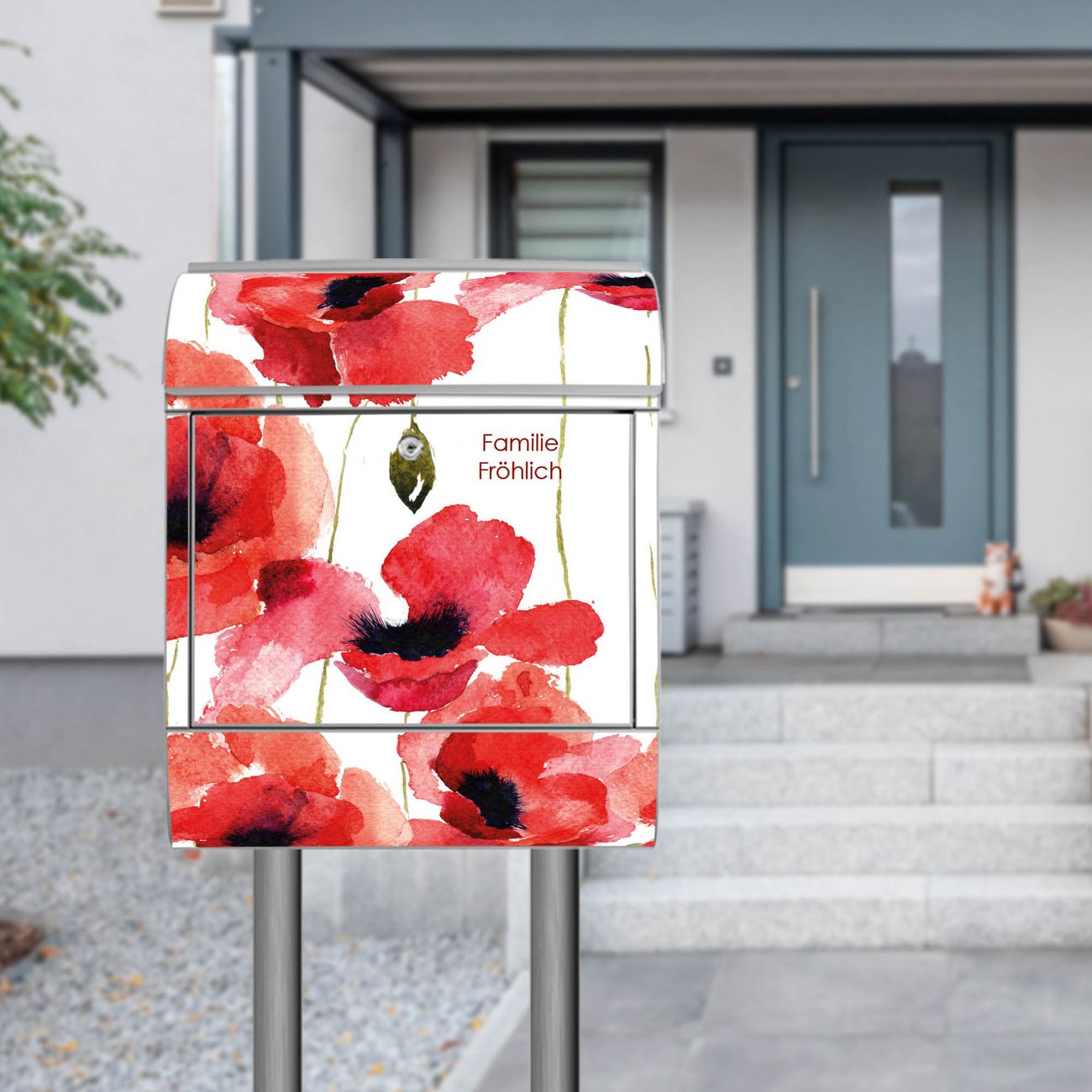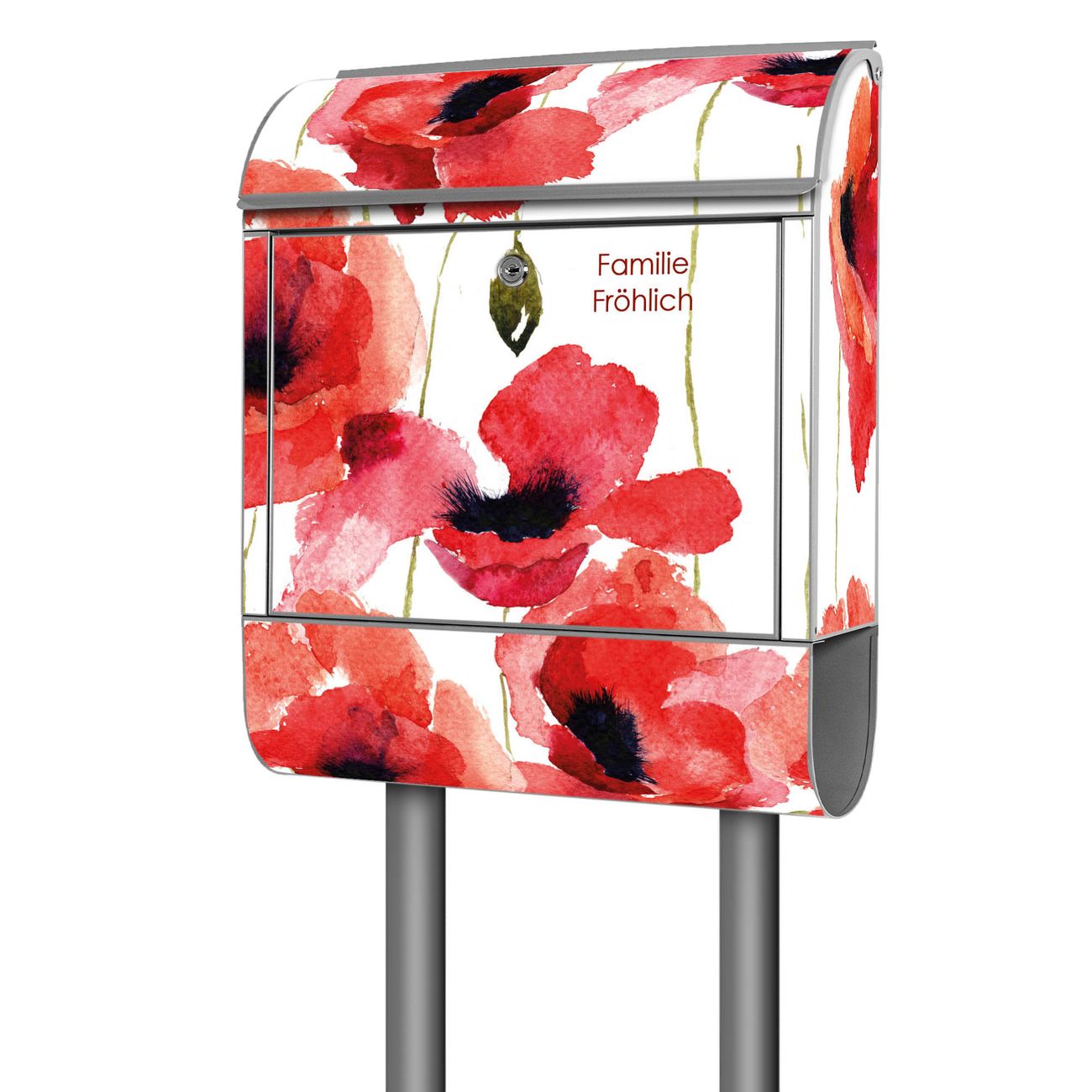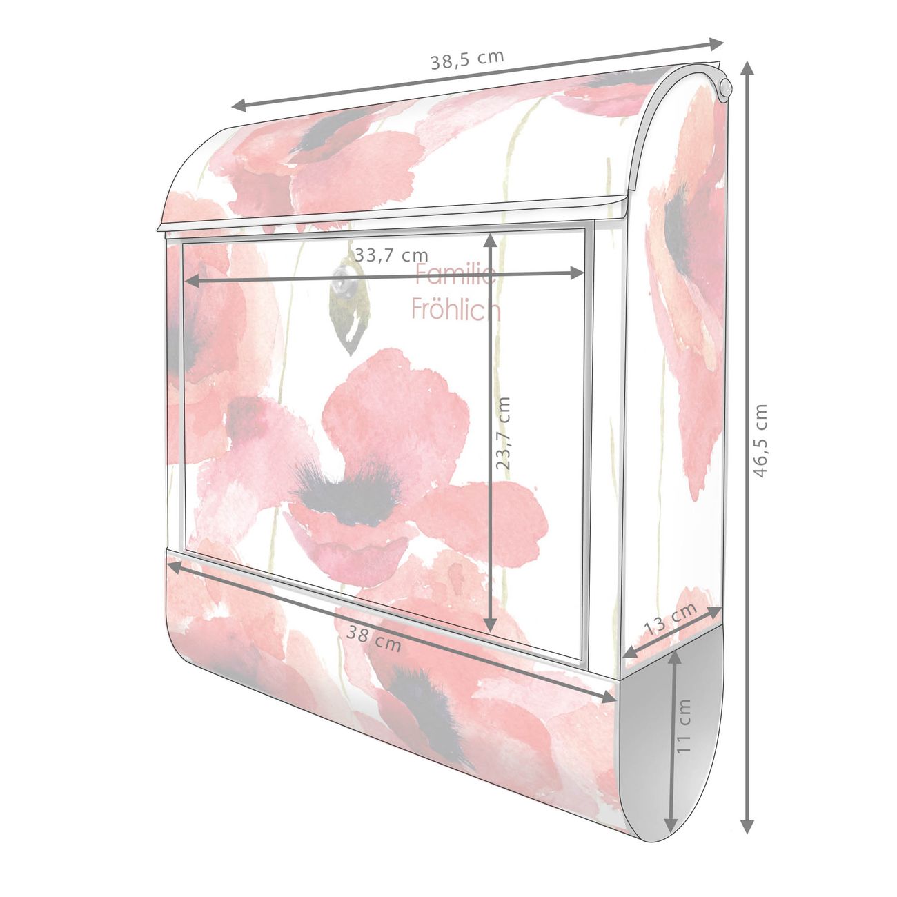 Der banjado Standbriefkasten mit Motiv Motiv Mohn Aquarell kombiniert großzügigen Stauraum mit modernem Design. Durch das geräumige Fach finden auch große A4-Sendungen problemlos Platz. Die integrierte Zeitungsrolle sorgt dafür, dass Tageszeitungen und Magazine separat und griffbereit untergebracht sind. Der pulverbeschichtete Standfuß ist farblich passend zum Briefkasten gestaltet und sorgt für ein stimmiges Gesamtbild. Mit dem individuellen Motiv setzen Sie einen optischen Akzent, der sowohl praktisch als auch dekorativ ist.