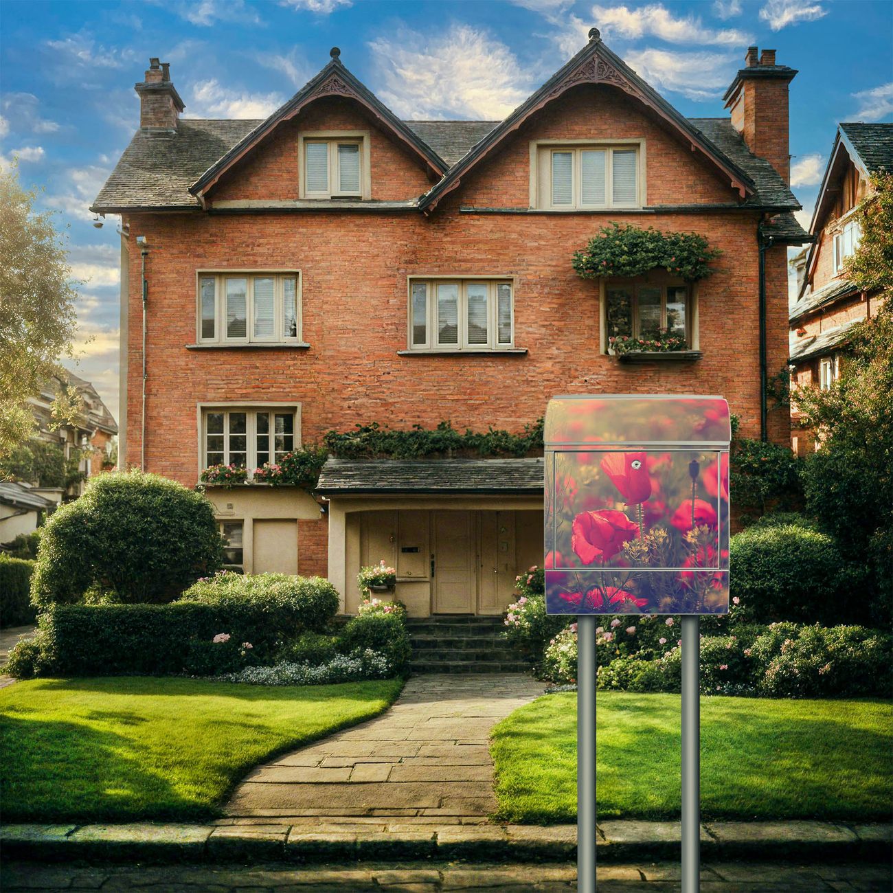 Der banjado Standbriefkasten mit Motiv Motiv Mohn kombiniert großzügigen Stauraum mit modernem Design. Durch das geräumige Fach finden auch große A4-Sendungen problemlos Platz. Die integrierte Zeitungsrolle sorgt dafür, dass Tageszeitungen und Magazine separat und griffbereit untergebracht sind. Der pulverbeschichtete Standfuß ist farblich passend zum Briefkasten gestaltet und sorgt für ein stimmiges Gesamtbild. Mit dem individuellen Motiv setzen Sie einen optischen Akzent, der sowohl praktisch als auch dekorativ ist.