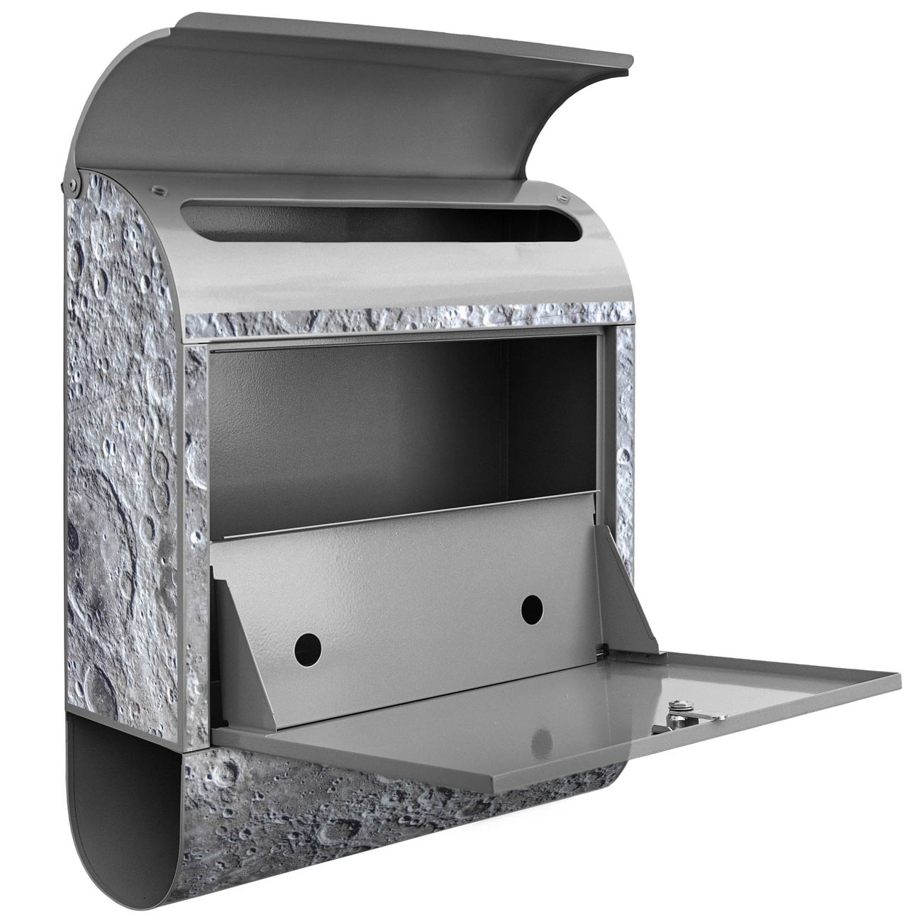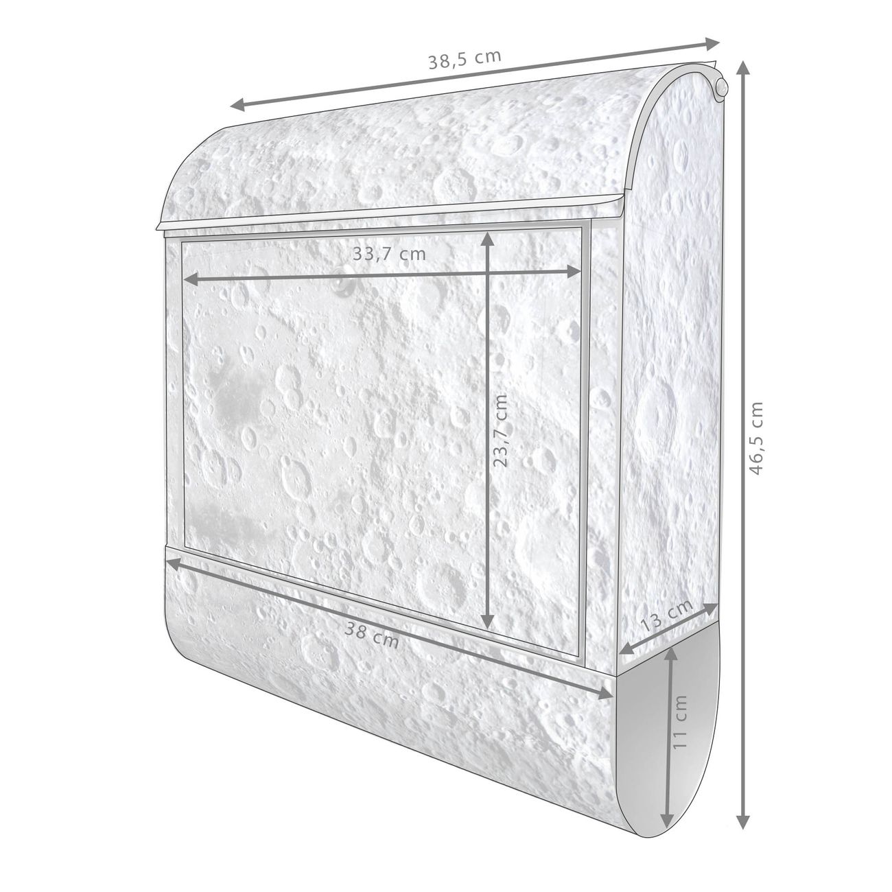 Der banjado Standbriefkasten mit Motiv Motiv Mondoberfläche kombiniert großzügigen Stauraum mit modernem Design. Durch das geräumige Fach finden auch große A4-Sendungen problemlos Platz. Die integrierte Zeitungsrolle sorgt dafür, dass Tageszeitungen und Magazine separat und griffbereit untergebracht sind. Der pulverbeschichtete Standfuß ist farblich passend zum Briefkasten gestaltet und sorgt für ein stimmiges Gesamtbild. Mit dem individuellen Motiv setzen Sie einen optischen Akzent, der sowohl praktisch als auch dekorativ ist.