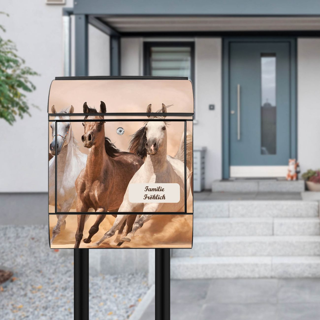 Der Standbriefkasten besteht aus pulverbeschichtetem Stahl und ist insgesamt ca. 161,5 x 47 x 16 cm groß. Das Motiv wird auf eine wetter- und UV-beständige Folie aufgebracht und mit einem robusten Schutzlaminat versiegelt. Damit bleibt die Farbbrillanz auch bei Sonne und Regen lange erhalten. Für einen sicheren Halt empfehlen wir, den Standbriefkasten mindestens 15 cm einzubetonieren. Jeder Briefkasten wird in Sachsen in einer kleinen Manufaktur von Hand veredelt - Sie erhalten ein Stück langlebige Handarbeit, das Funktionalität und Design vereint.