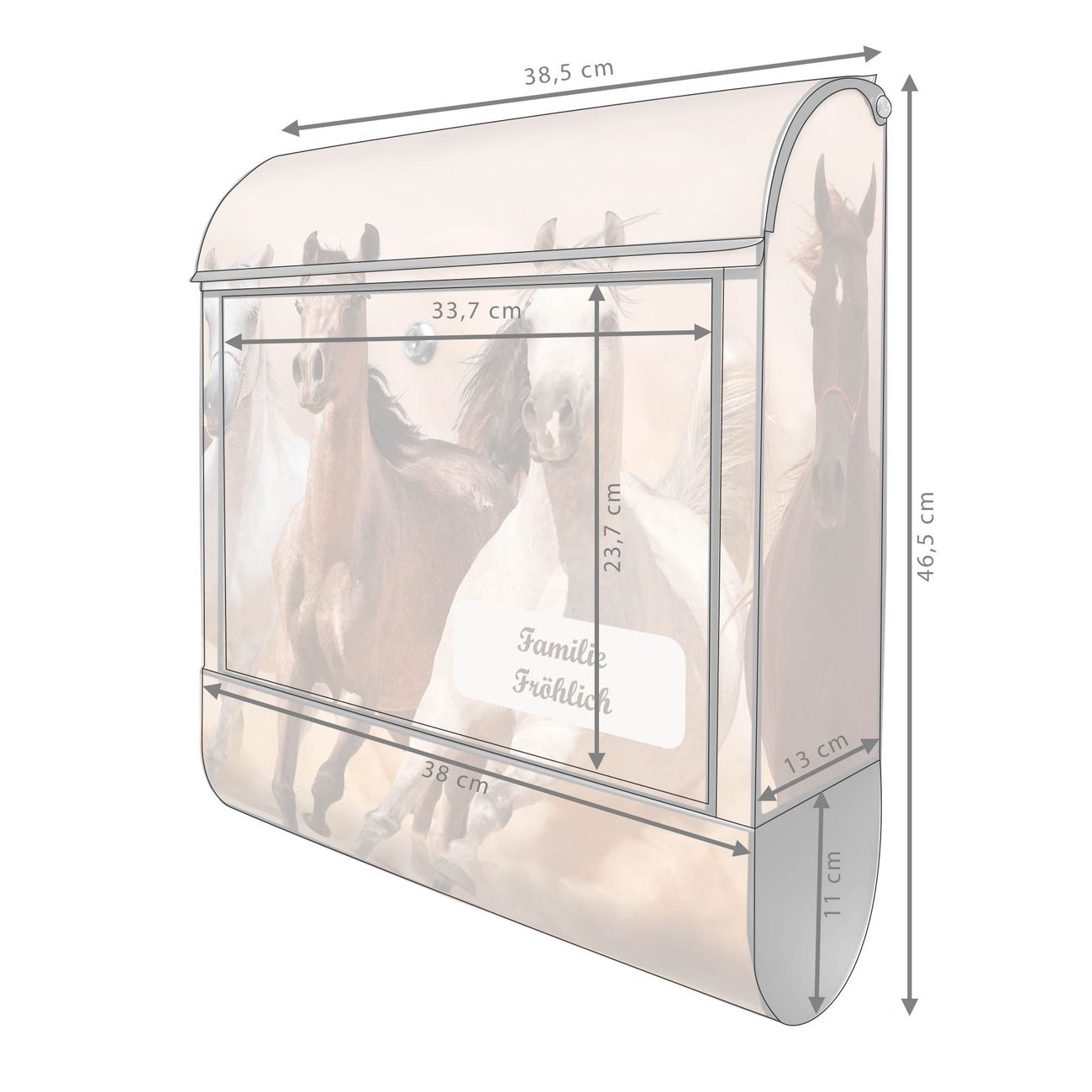 Der banjado Standbriefkasten mit Motiv Motiv Mongolische Stimmung kombiniert großzügigen Stauraum mit modernem Design. Durch das geräumige Fach finden auch große A4-Sendungen problemlos Platz. Die integrierte Zeitungsrolle sorgt dafür, dass Tageszeitungen und Magazine separat und griffbereit untergebracht sind. Der pulverbeschichtete Standfuß ist farblich passend zum Briefkasten gestaltet und sorgt für ein stimmiges Gesamtbild. Mit dem individuellen Motiv setzen Sie einen optischen Akzent, der sowohl praktisch als auch dekorativ ist.