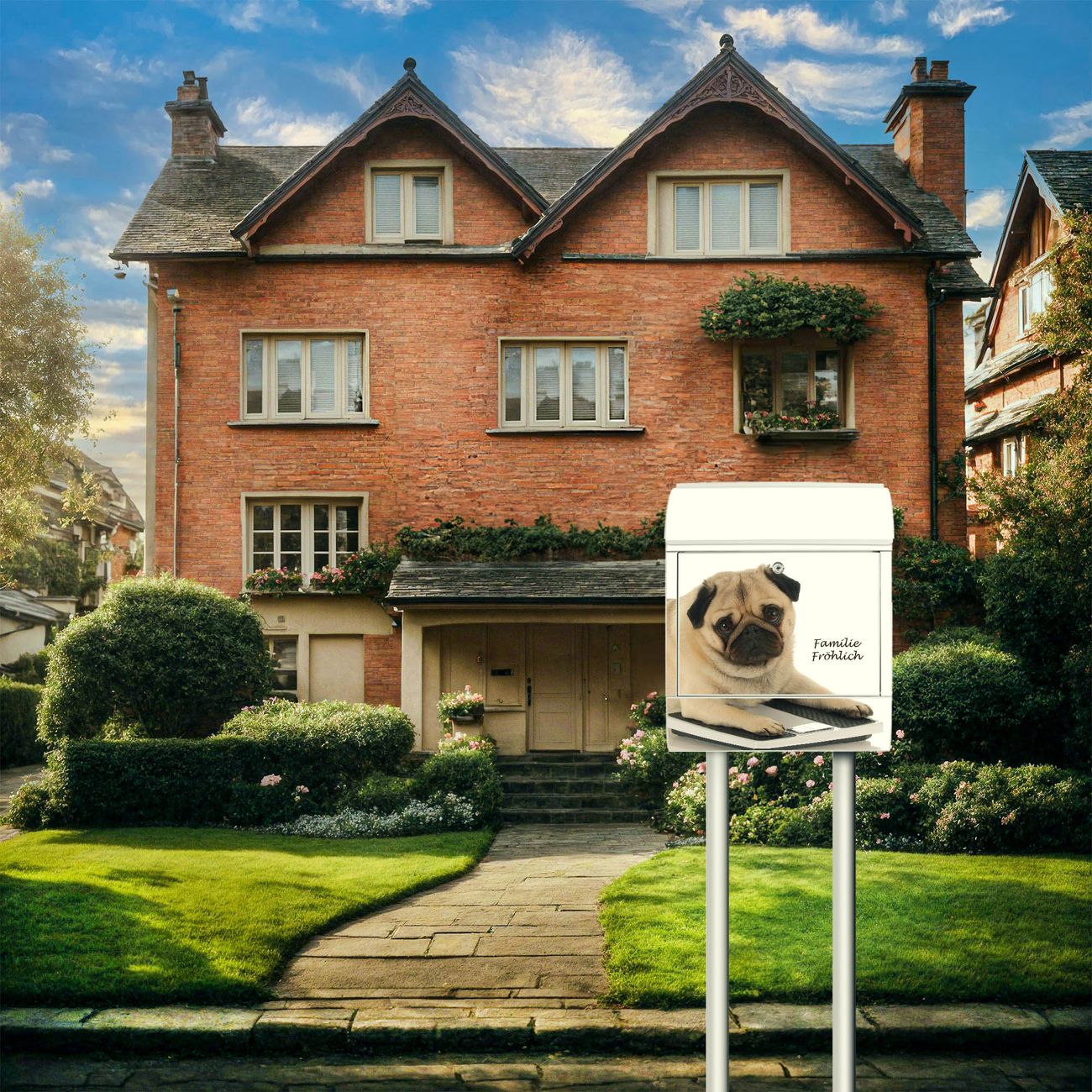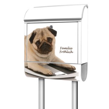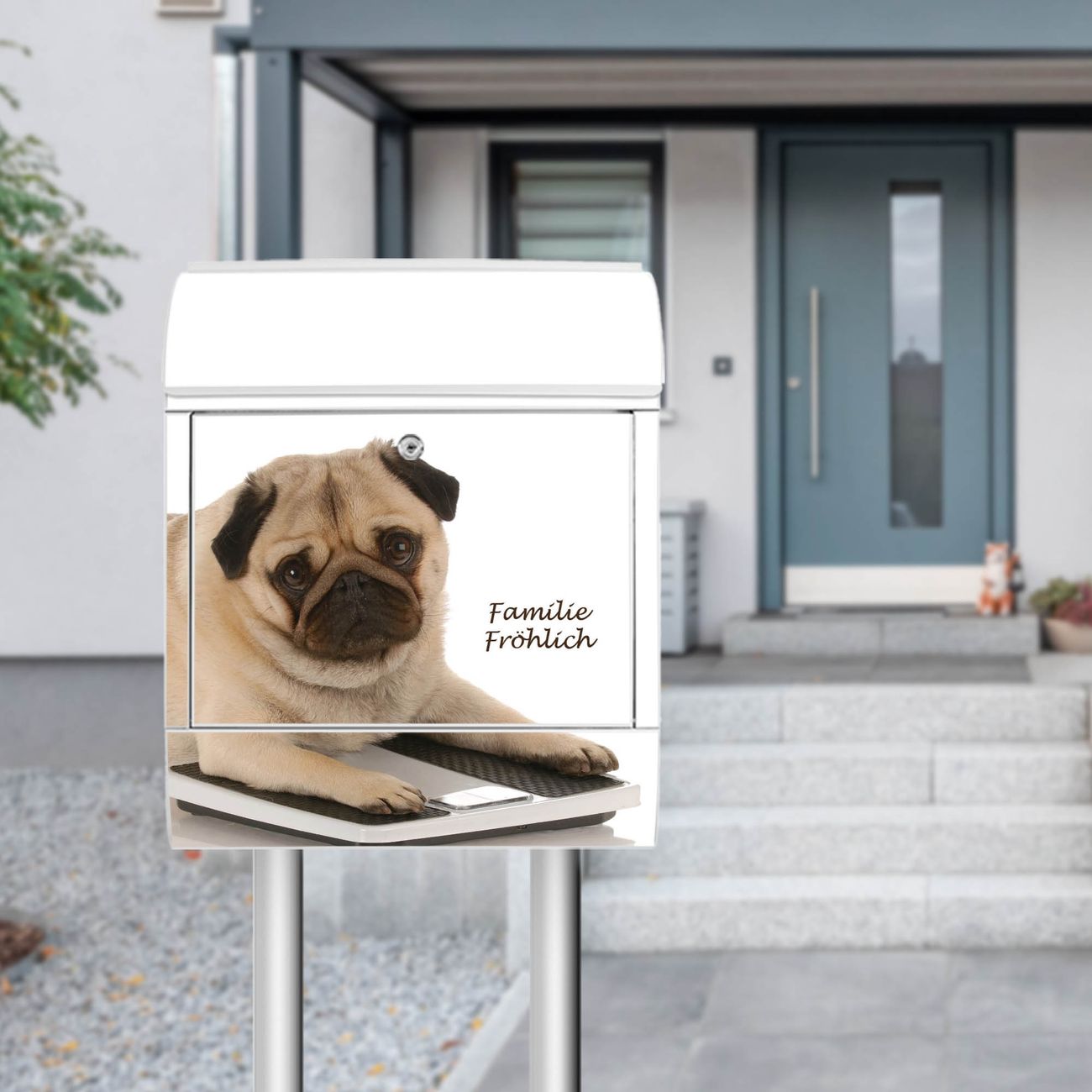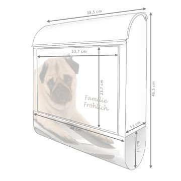 Der banjado Standbriefkasten mit Motiv Motiv Mops kombiniert großzügigen Stauraum mit modernem Design. Durch das geräumige Fach finden auch große A4-Sendungen problemlos Platz. Die integrierte Zeitungsrolle sorgt dafür, dass Tageszeitungen und Magazine separat und griffbereit untergebracht sind. Der pulverbeschichtete Standfuß ist farblich passend zum Briefkasten gestaltet und sorgt für ein stimmiges Gesamtbild. Mit dem individuellen Motiv setzen Sie einen optischen Akzent, der sowohl praktisch als auch dekorativ ist.