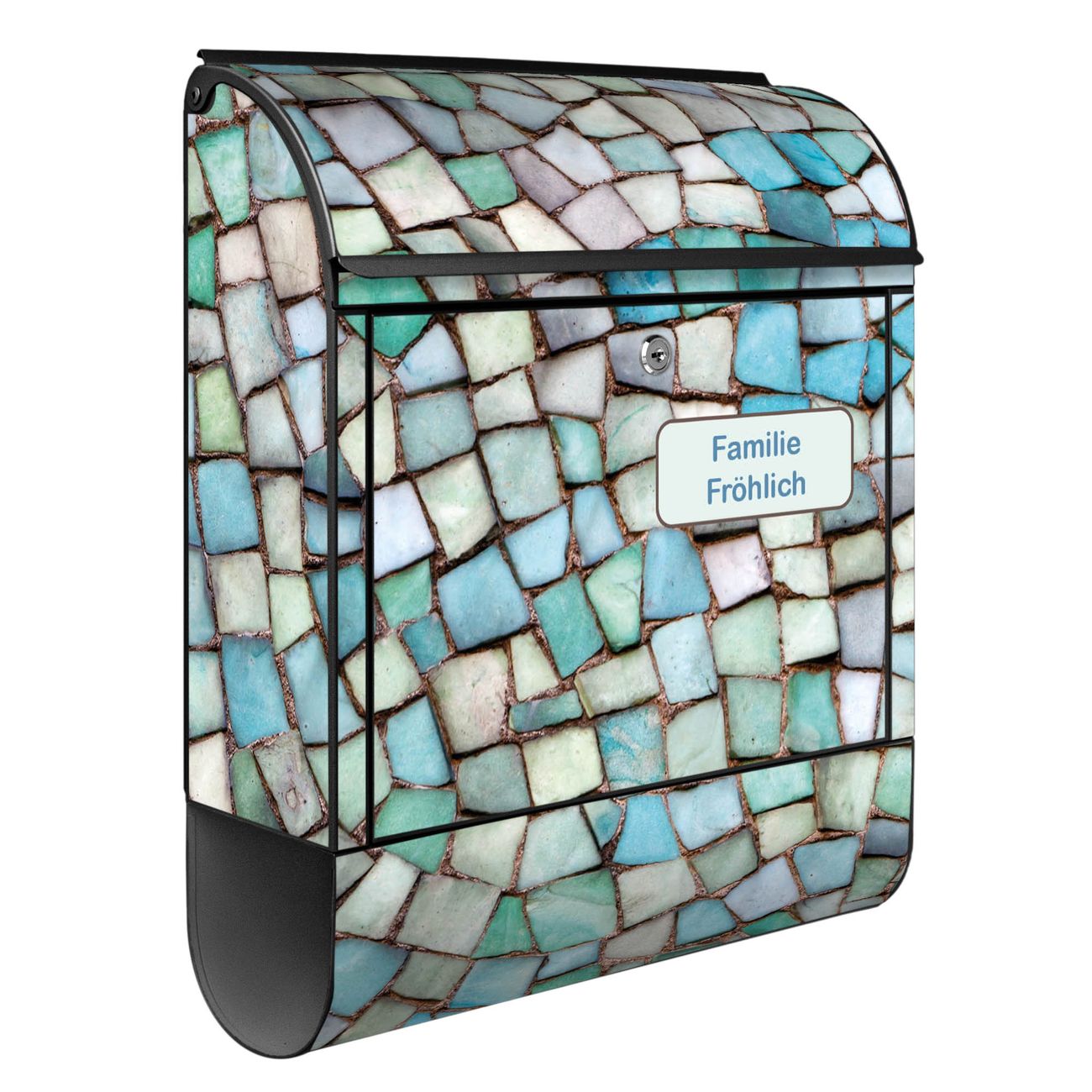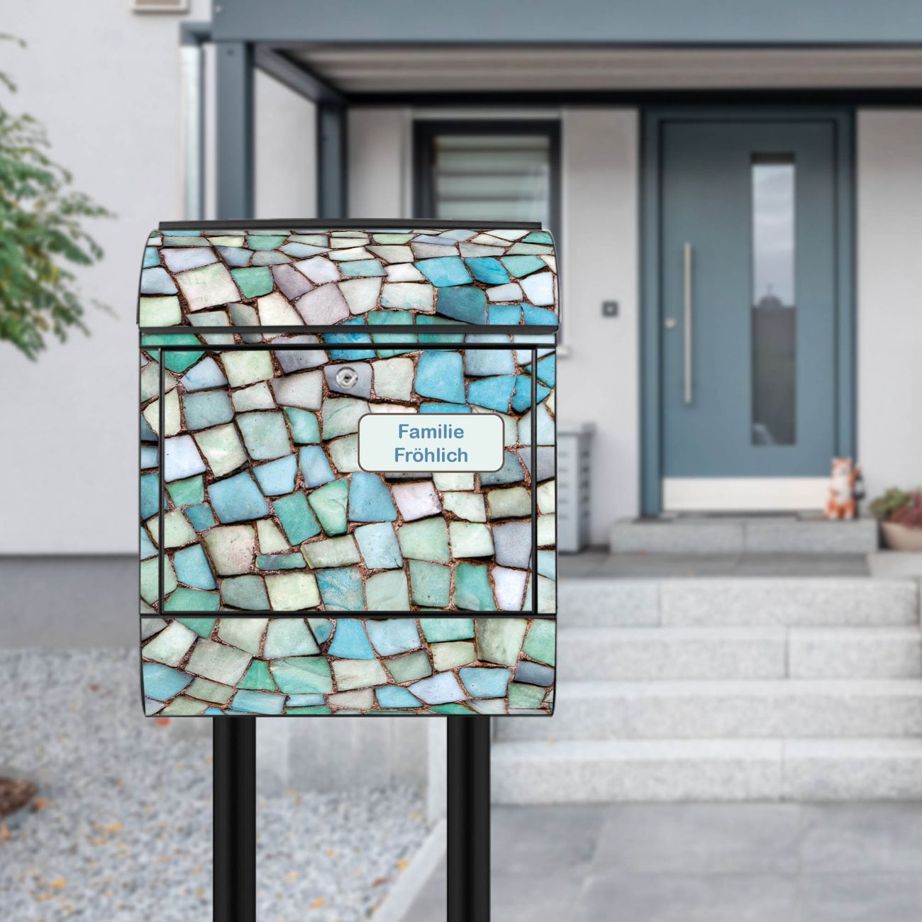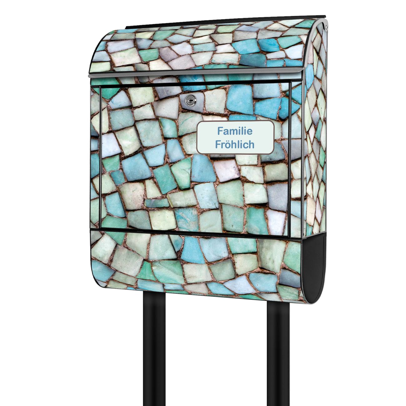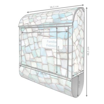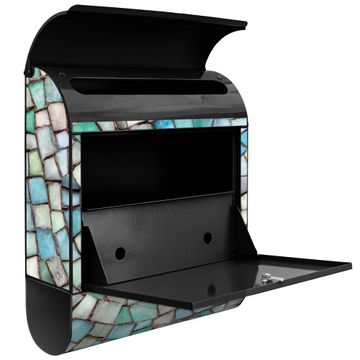Der banjado Standbriefkasten mit Motiv Motiv Mosaik Blau kombiniert großzügigen Stauraum mit modernem Design. Durch das geräumige Fach finden auch große A4-Sendungen problemlos Platz. Die integrierte Zeitungsrolle sorgt dafür, dass Tageszeitungen und Magazine separat und griffbereit untergebracht sind. Der pulverbeschichtete Standfuß ist farblich passend zum Briefkasten gestaltet und sorgt für ein stimmiges Gesamtbild. Mit dem individuellen Motiv setzen Sie einen optischen Akzent, der sowohl praktisch als auch dekorativ ist.