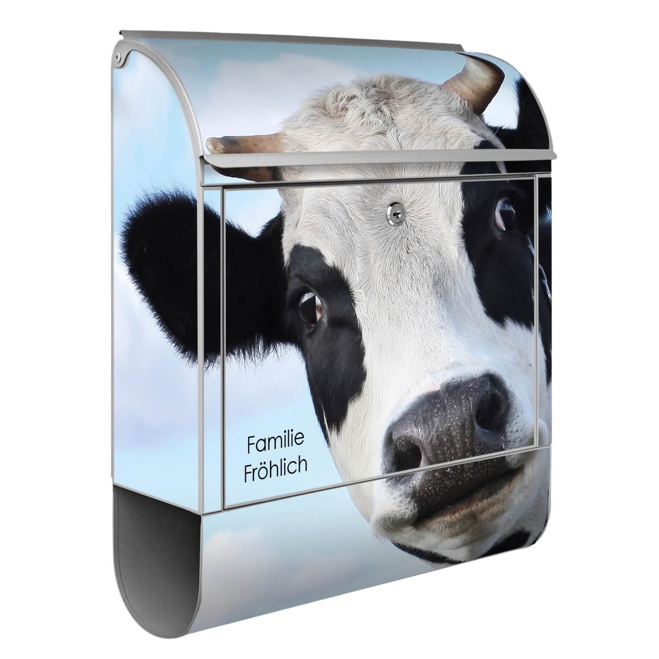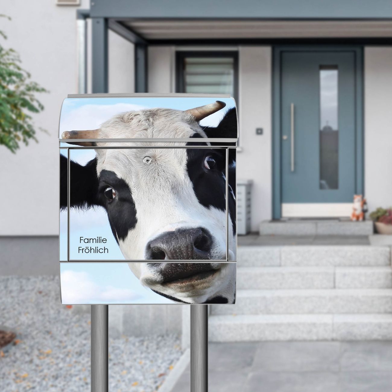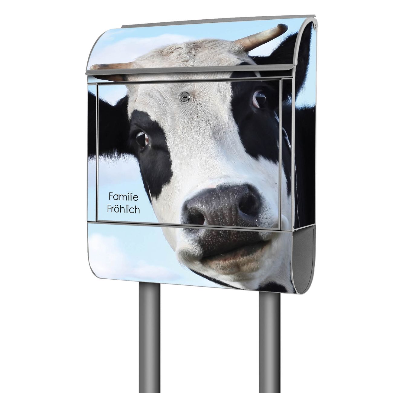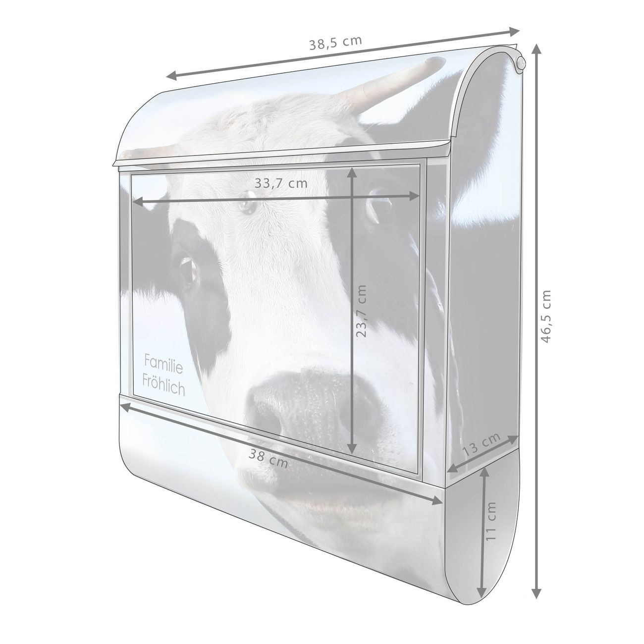 Der banjado Standbriefkasten mit Motiv Motiv Muh kombiniert großzügigen Stauraum mit modernem Design. Durch das geräumige Fach finden auch große A4-Sendungen problemlos Platz. Die integrierte Zeitungsrolle sorgt dafür, dass Tageszeitungen und Magazine separat und griffbereit untergebracht sind. Der pulverbeschichtete Standfuß ist farblich passend zum Briefkasten gestaltet und sorgt für ein stimmiges Gesamtbild. Mit dem individuellen Motiv setzen Sie einen optischen Akzent, der sowohl praktisch als auch dekorativ ist.