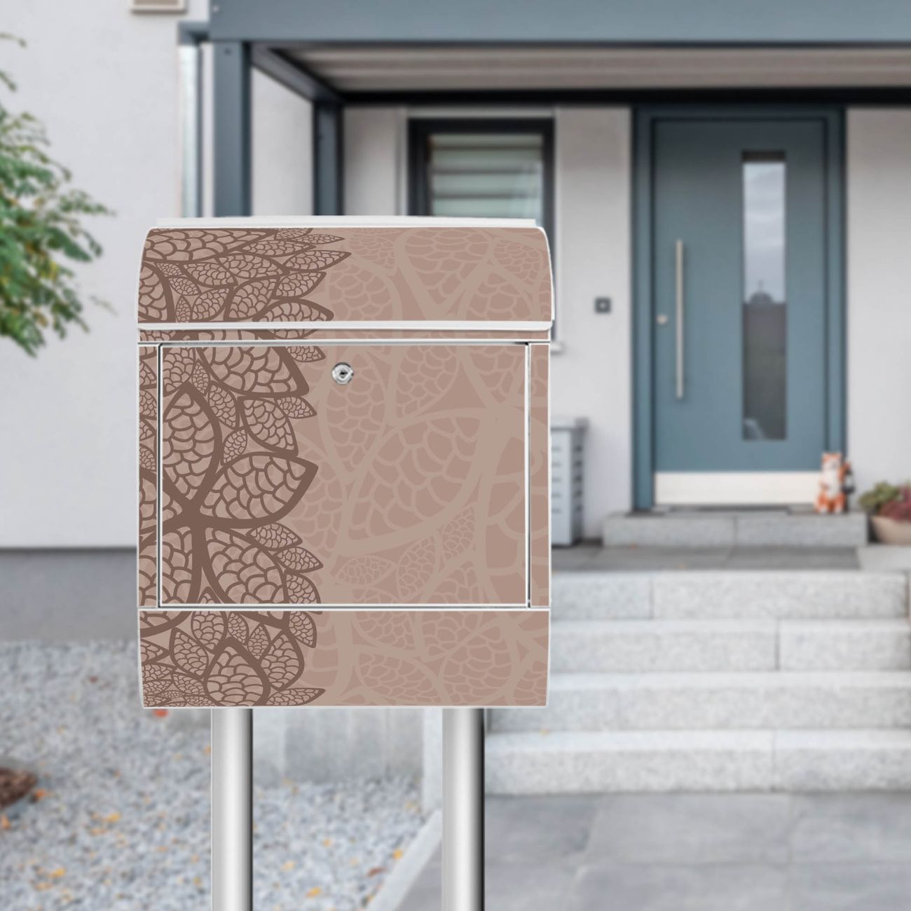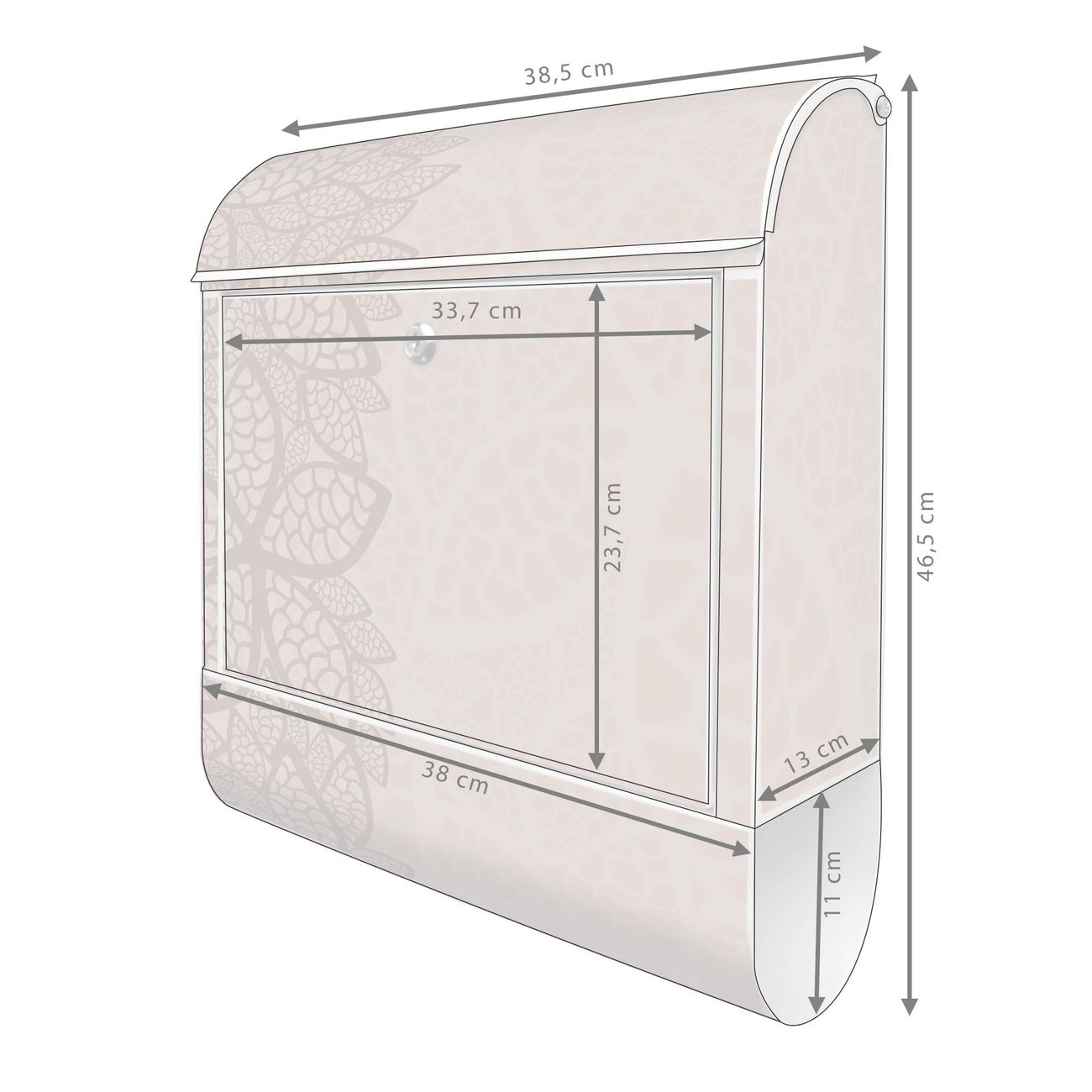 Der banjado Standbriefkasten mit Motiv Motiv Muster Blätter kombiniert großzügigen Stauraum mit modernem Design. Durch das geräumige Fach finden auch große A4-Sendungen problemlos Platz. Die integrierte Zeitungsrolle sorgt dafür, dass Tageszeitungen und Magazine separat und griffbereit untergebracht sind. Der pulverbeschichtete Standfuß ist farblich passend zum Briefkasten gestaltet und sorgt für ein stimmiges Gesamtbild. Mit dem individuellen Motiv setzen Sie einen optischen Akzent, der sowohl praktisch als auch dekorativ ist.