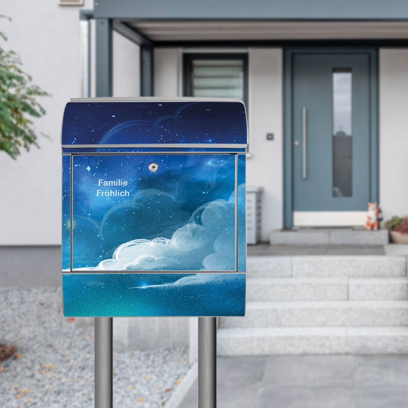 Der banjado Standbriefkasten mit Motiv Motiv Nachthimmel 1 kombiniert großzügigen Stauraum mit modernem Design. Durch das geräumige Fach finden auch große A4-Sendungen problemlos Platz. Die integrierte Zeitungsrolle sorgt dafür, dass Tageszeitungen und Magazine separat und griffbereit untergebracht sind. Der pulverbeschichtete Standfuß ist farblich passend zum Briefkasten gestaltet und sorgt für ein stimmiges Gesamtbild. Mit dem individuellen Motiv setzen Sie einen optischen Akzent, der sowohl praktisch als auch dekorativ ist.