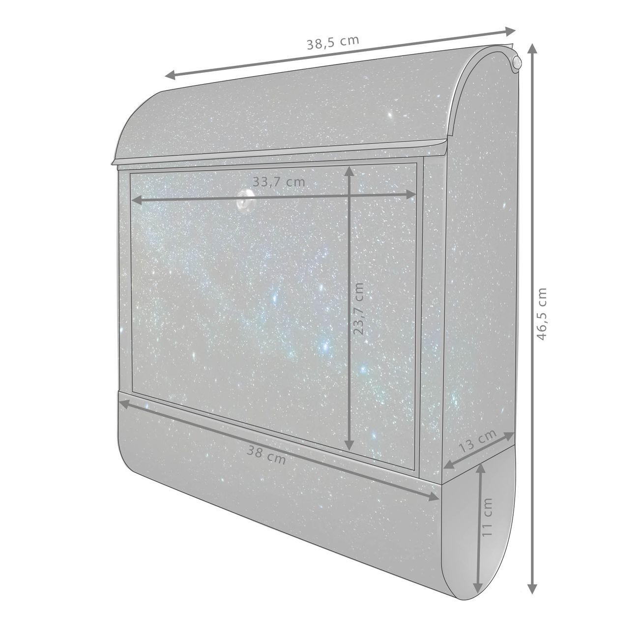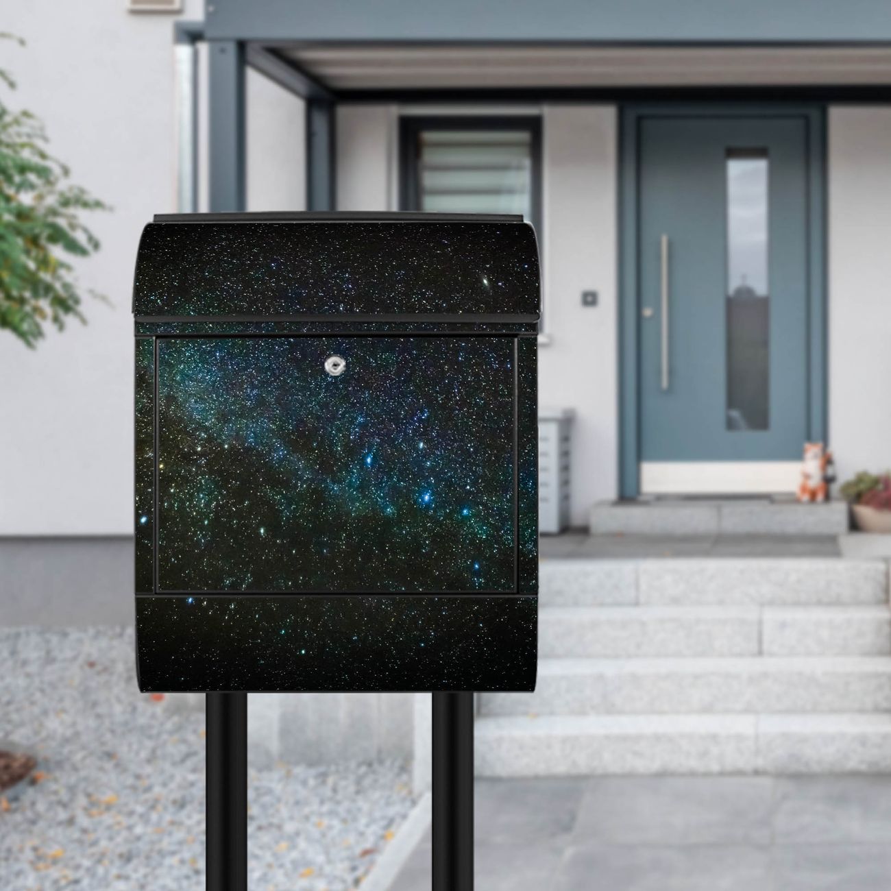 Der banjado Standbriefkasten mit Motiv Motiv Nachthimmel kombiniert großzügigen Stauraum mit modernem Design. Durch das geräumige Fach finden auch große A4-Sendungen problemlos Platz. Die integrierte Zeitungsrolle sorgt dafür, dass Tageszeitungen und Magazine separat und griffbereit untergebracht sind. Der pulverbeschichtete Standfuß ist farblich passend zum Briefkasten gestaltet und sorgt für ein stimmiges Gesamtbild. Mit dem individuellen Motiv setzen Sie einen optischen Akzent, der sowohl praktisch als auch dekorativ ist.