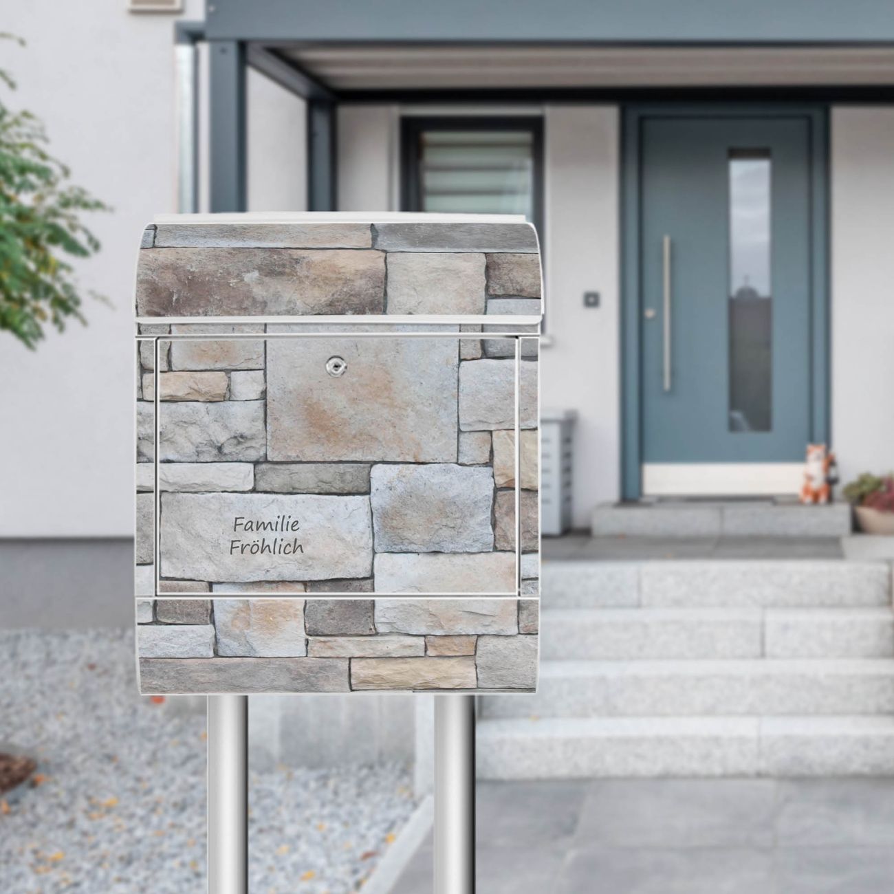 Der banjado Standbriefkasten mit Motiv Motiv Natursteinmauer kombiniert großzügigen Stauraum mit modernem Design. Durch das geräumige Fach finden auch große A4-Sendungen problemlos Platz. Die integrierte Zeitungsrolle sorgt dafür, dass Tageszeitungen und Magazine separat und griffbereit untergebracht sind. Der pulverbeschichtete Standfuß ist farblich passend zum Briefkasten gestaltet und sorgt für ein stimmiges Gesamtbild. Mit dem individuellen Motiv setzen Sie einen optischen Akzent, der sowohl praktisch als auch dekorativ ist.