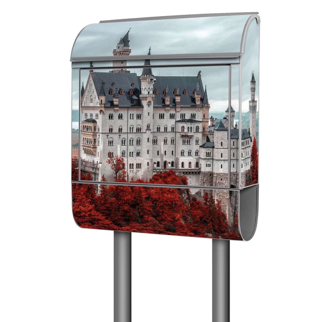 Der banjado Standbriefkasten mit Motiv Motiv Neuschwanstein kombiniert großzügigen Stauraum mit modernem Design. Durch das geräumige Fach finden auch große A4-Sendungen problemlos Platz. Die integrierte Zeitungsrolle sorgt dafür, dass Tageszeitungen und Magazine separat und griffbereit untergebracht sind. Der pulverbeschichtete Standfuß ist farblich passend zum Briefkasten gestaltet und sorgt für ein stimmiges Gesamtbild. Mit dem individuellen Motiv setzen Sie einen optischen Akzent, der sowohl praktisch als auch dekorativ ist.