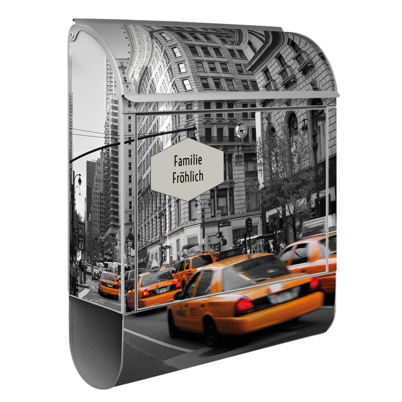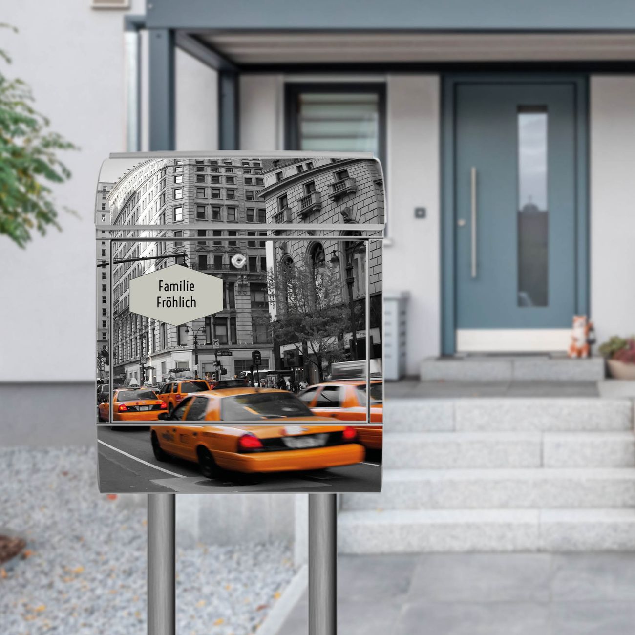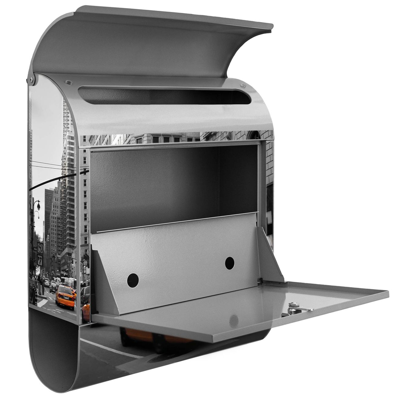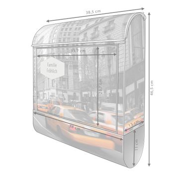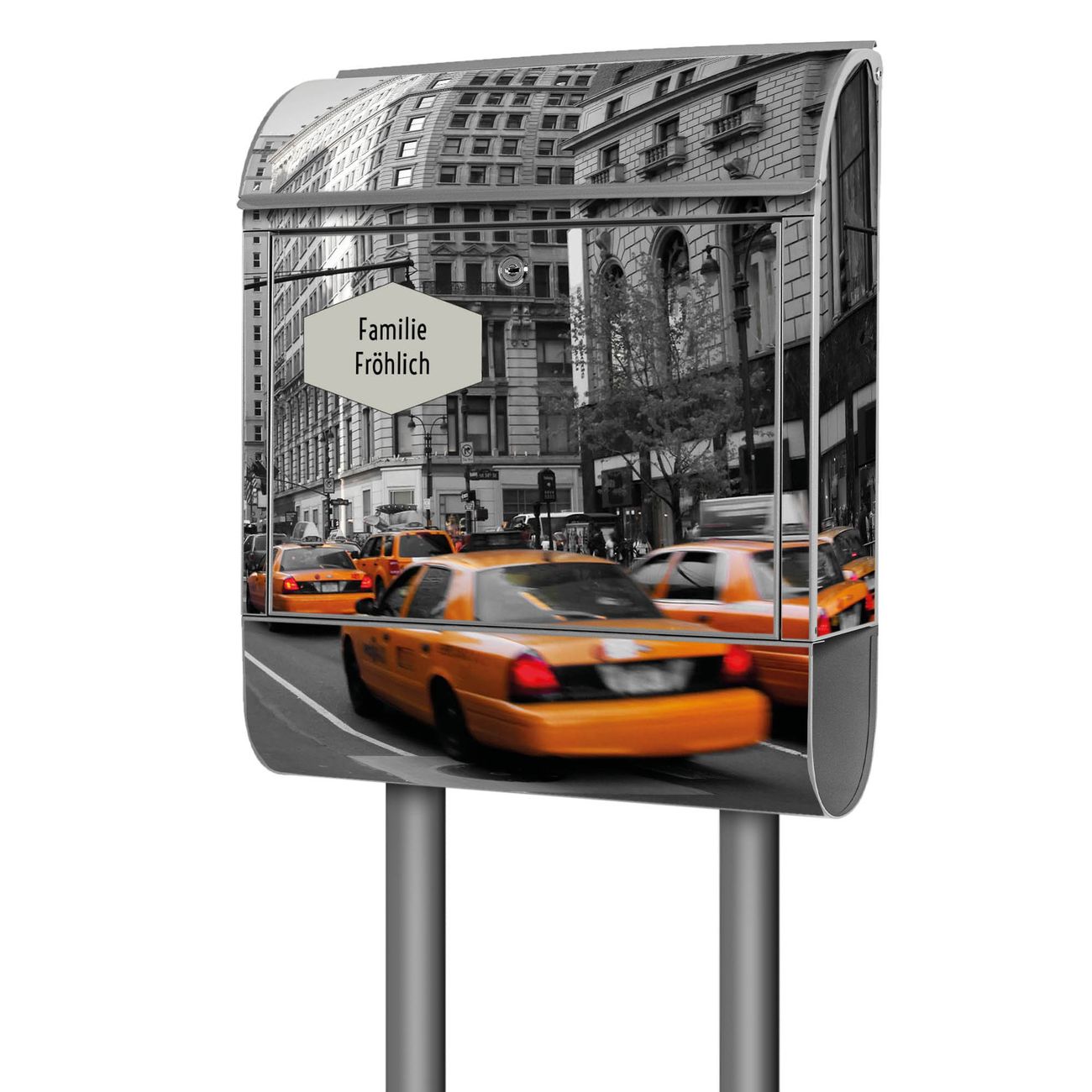 Der banjado Standbriefkasten mit Motiv Motiv New York Taxi kombiniert großzügigen Stauraum mit modernem Design. Durch das geräumige Fach finden auch große A4-Sendungen problemlos Platz. Die integrierte Zeitungsrolle sorgt dafür, dass Tageszeitungen und Magazine separat und griffbereit untergebracht sind. Der pulverbeschichtete Standfuß ist farblich passend zum Briefkasten gestaltet und sorgt für ein stimmiges Gesamtbild. Mit dem individuellen Motiv setzen Sie einen optischen Akzent, der sowohl praktisch als auch dekorativ ist.