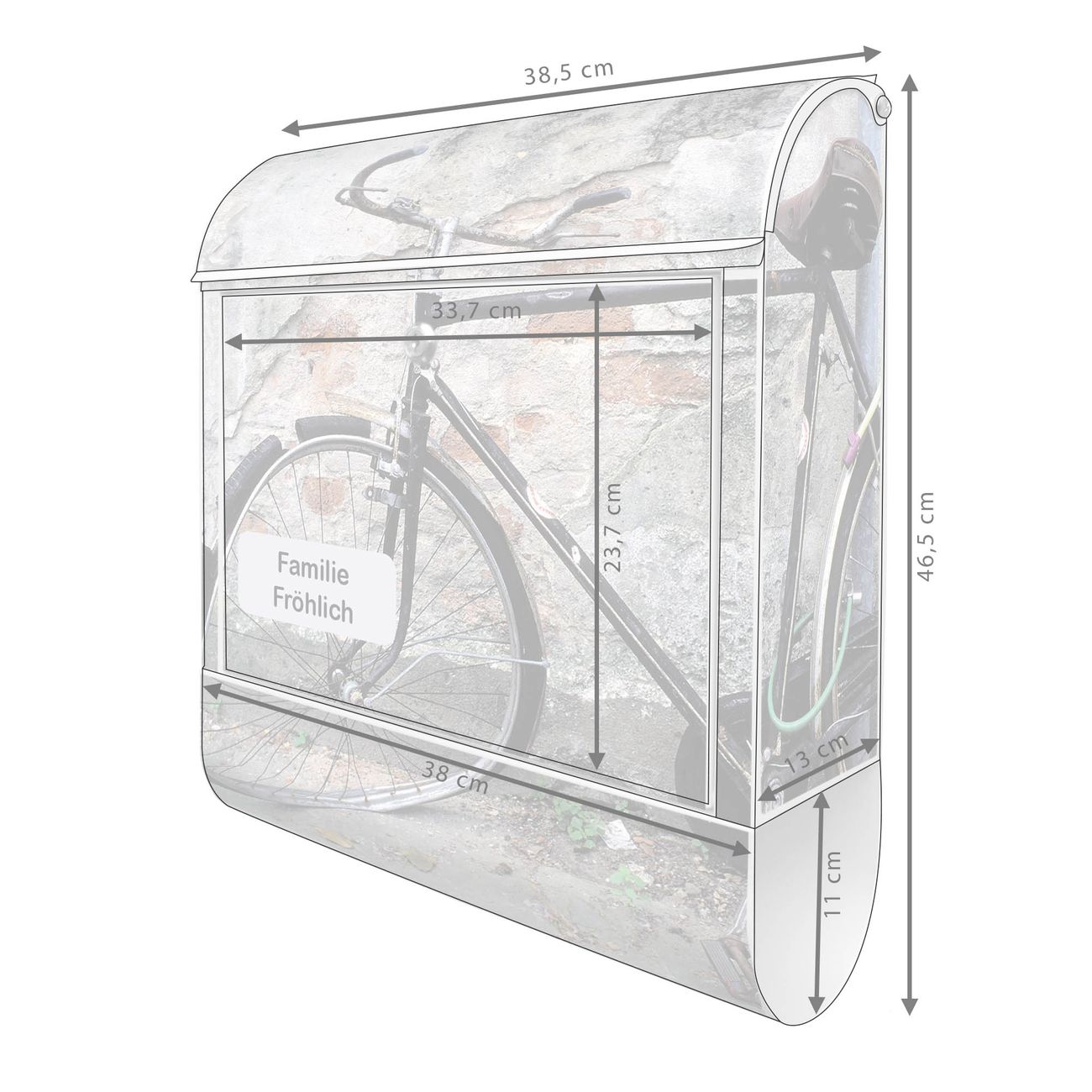 Der banjado Standbriefkasten mit Motiv Motiv Nostalgie Rad kombiniert großzügigen Stauraum mit modernem Design. Durch das geräumige Fach finden auch große A4-Sendungen problemlos Platz. Die integrierte Zeitungsrolle sorgt dafür, dass Tageszeitungen und Magazine separat und griffbereit untergebracht sind. Der pulverbeschichtete Standfuß ist farblich passend zum Briefkasten gestaltet und sorgt für ein stimmiges Gesamtbild. Mit dem individuellen Motiv setzen Sie einen optischen Akzent, der sowohl praktisch als auch dekorativ ist.