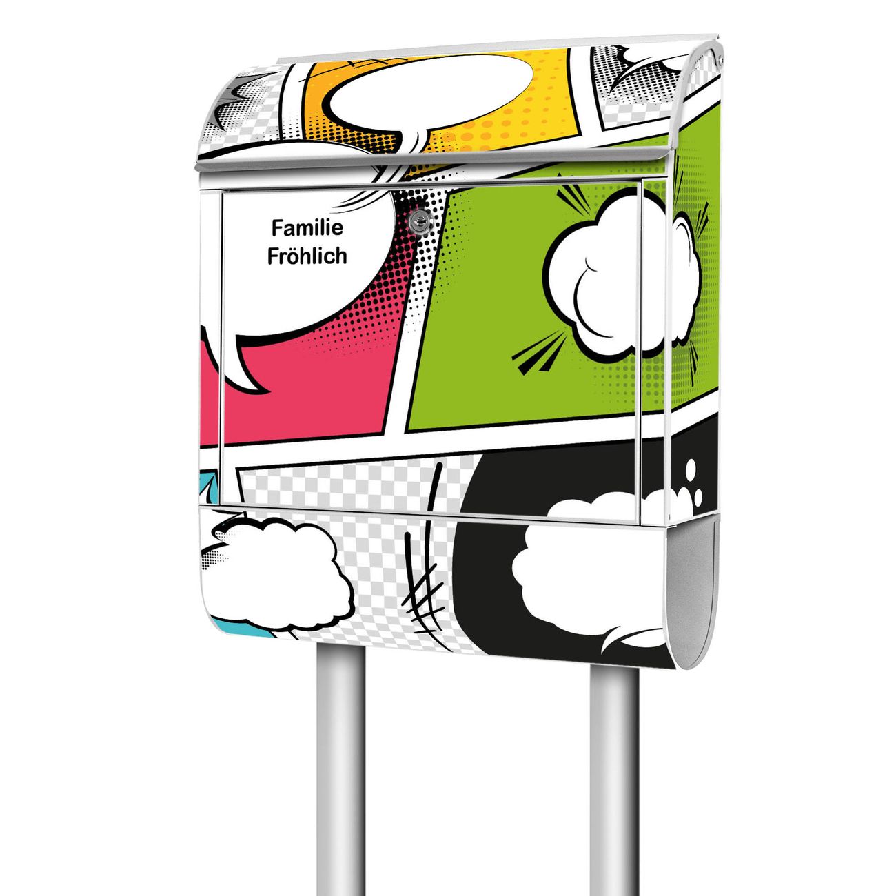 Der Standbriefkasten besteht aus pulverbeschichtetem Stahl und ist insgesamt ca. 161,5 x 47 x 16 cm groß. Das Motiv wird auf eine wetter- und UV-beständige Folie aufgebracht und mit einem robusten Schutzlaminat versiegelt. Damit bleibt die Farbbrillanz auch bei Sonne und Regen lange erhalten. Für einen sicheren Halt empfehlen wir, den Standbriefkasten mindestens 15 cm einzubetonieren. Jeder Briefkasten wird in Sachsen in einer kleinen Manufaktur von Hand veredelt - Sie erhalten ein Stück langlebige Handarbeit, das Funktionalität und Design vereint.