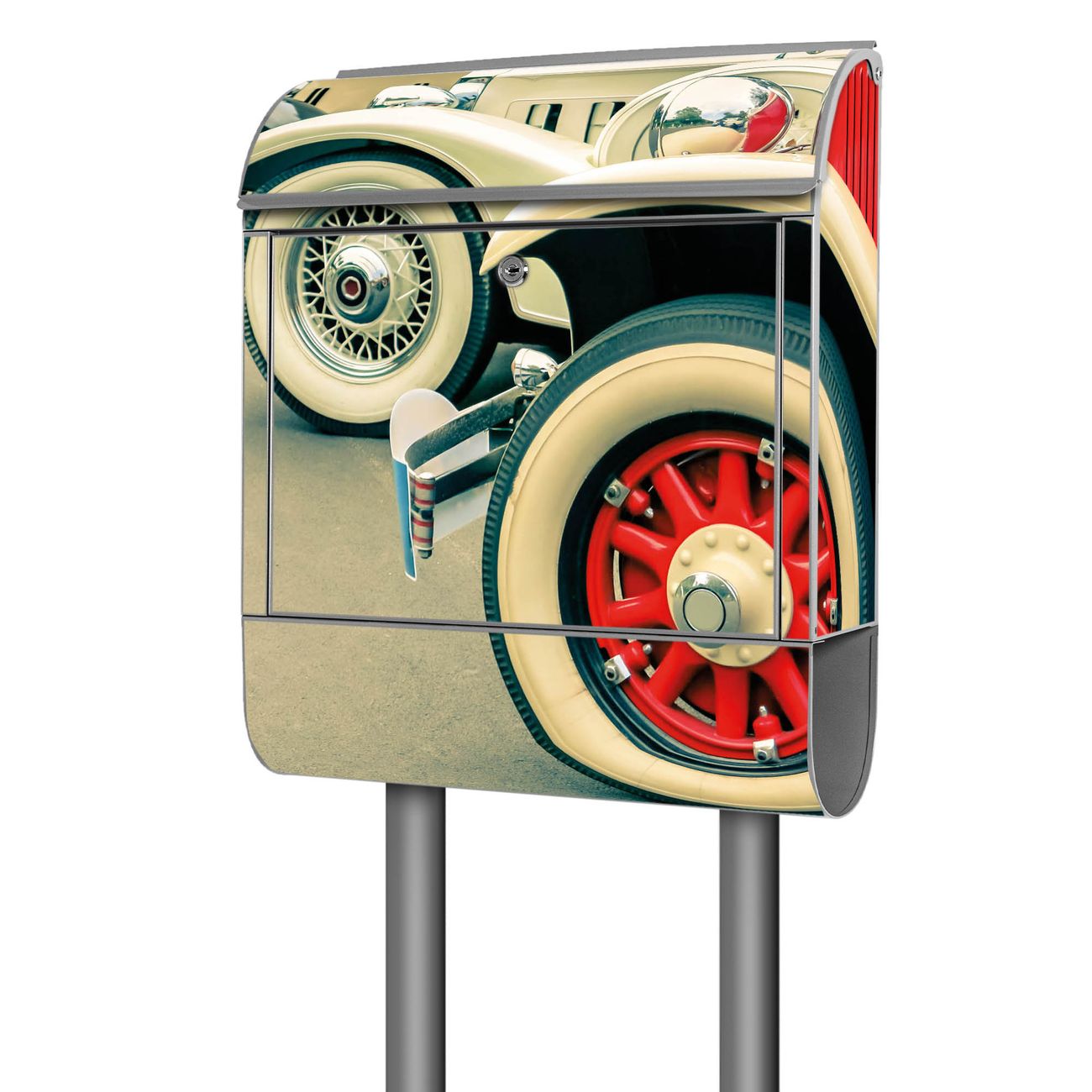 Standbriefkasten Stahl Oldtimer Räder