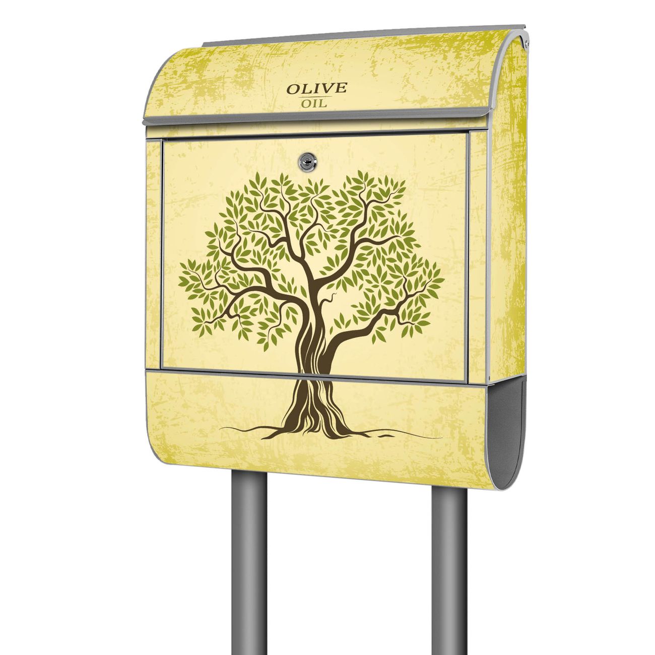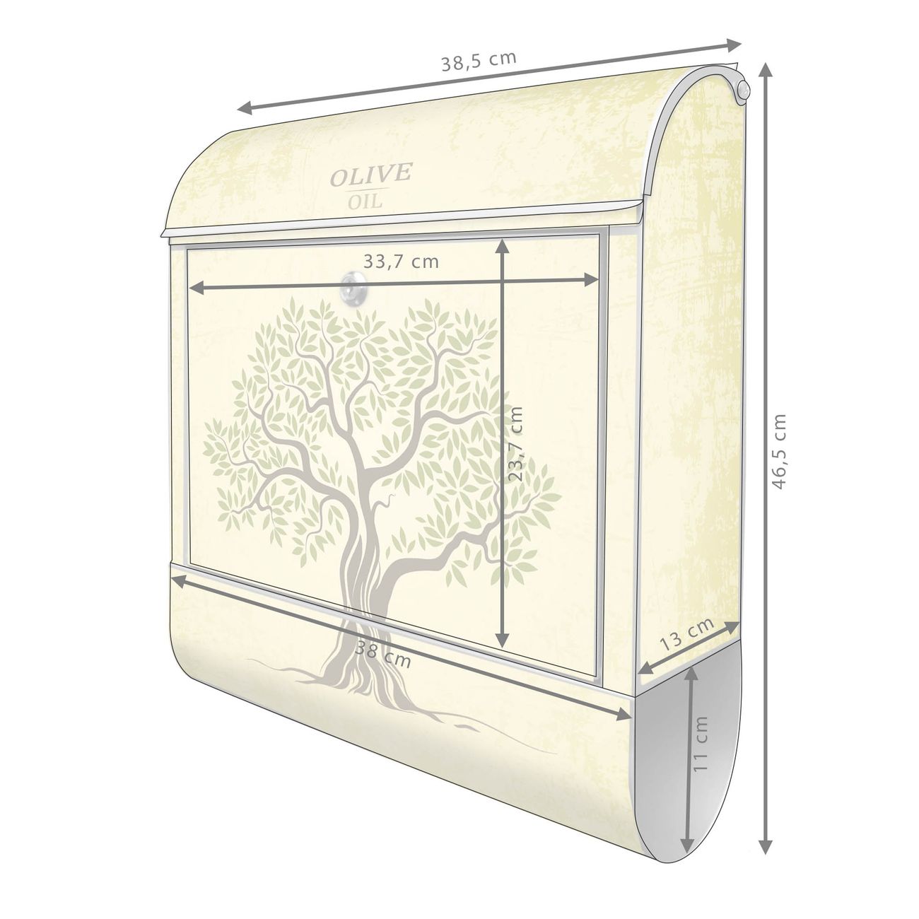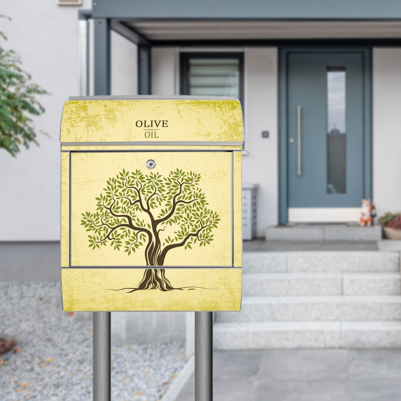 Der banjado Standbriefkasten mit Motiv Motiv Olivenbaum kombiniert großzügigen Stauraum mit modernem Design. Durch das geräumige Fach finden auch große A4-Sendungen problemlos Platz. Die integrierte Zeitungsrolle sorgt dafür, dass Tageszeitungen und Magazine separat und griffbereit untergebracht sind. Der pulverbeschichtete Standfuß ist farblich passend zum Briefkasten gestaltet und sorgt für ein stimmiges Gesamtbild. Mit dem individuellen Motiv setzen Sie einen optischen Akzent, der sowohl praktisch als auch dekorativ ist.