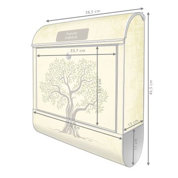 Der banjado Standbriefkasten mit Motiv Motiv Olivenbaum kombiniert großzügigen Stauraum mit modernem Design. Durch das geräumige Fach finden auch große A4-Sendungen problemlos Platz. Die integrierte Zeitungsrolle sorgt dafür, dass Tageszeitungen und Magazine separat und griffbereit untergebracht sind. Der pulverbeschichtete Standfuß ist farblich passend zum Briefkasten gestaltet und sorgt für ein stimmiges Gesamtbild. Mit dem individuellen Motiv setzen Sie einen optischen Akzent, der sowohl praktisch als auch dekorativ ist.