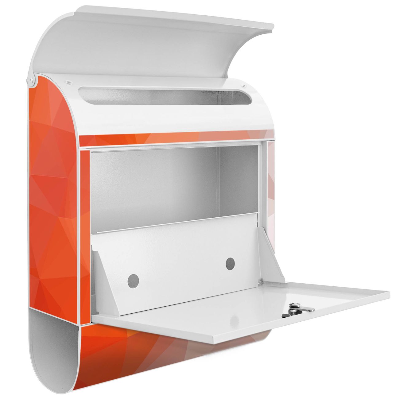 Der banjado Standbriefkasten mit Motiv Motiv Orange Polygon kombiniert großzügigen Stauraum mit modernem Design. Durch das geräumige Fach finden auch große A4-Sendungen problemlos Platz. Die integrierte Zeitungsrolle sorgt dafür, dass Tageszeitungen und Magazine separat und griffbereit untergebracht sind. Der pulverbeschichtete Standfuß ist farblich passend zum Briefkasten gestaltet und sorgt für ein stimmiges Gesamtbild. Mit dem individuellen Motiv setzen Sie einen optischen Akzent, der sowohl praktisch als auch dekorativ ist.