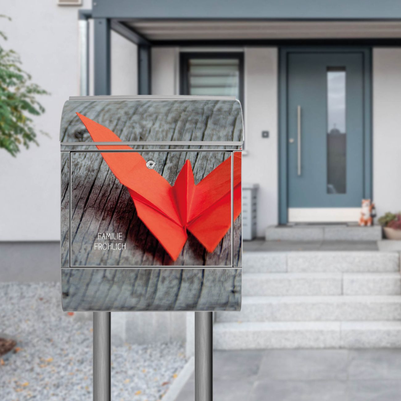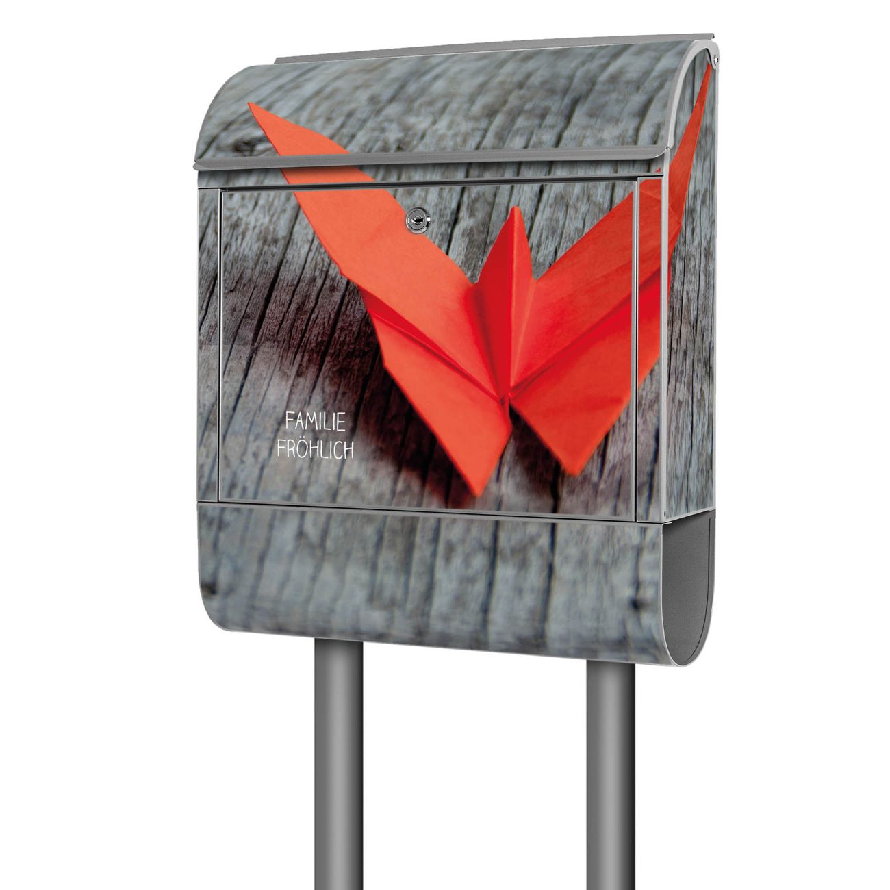 Der banjado Standbriefkasten mit Motiv Motiv Origami Schmetterling kombiniert großzügigen Stauraum mit modernem Design. Durch das geräumige Fach finden auch große A4-Sendungen problemlos Platz. Die integrierte Zeitungsrolle sorgt dafür, dass Tageszeitungen und Magazine separat und griffbereit untergebracht sind. Der pulverbeschichtete Standfuß ist farblich passend zum Briefkasten gestaltet und sorgt für ein stimmiges Gesamtbild. Mit dem individuellen Motiv setzen Sie einen optischen Akzent, der sowohl praktisch als auch dekorativ ist.